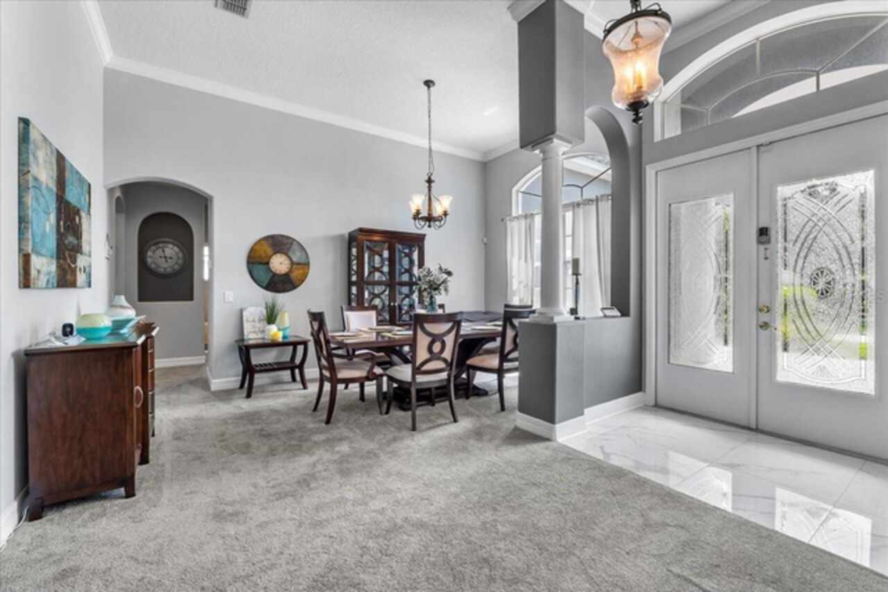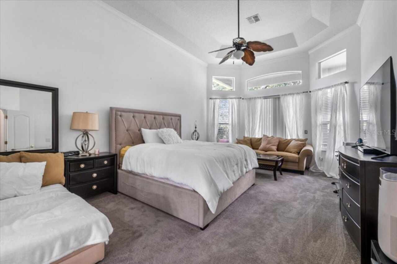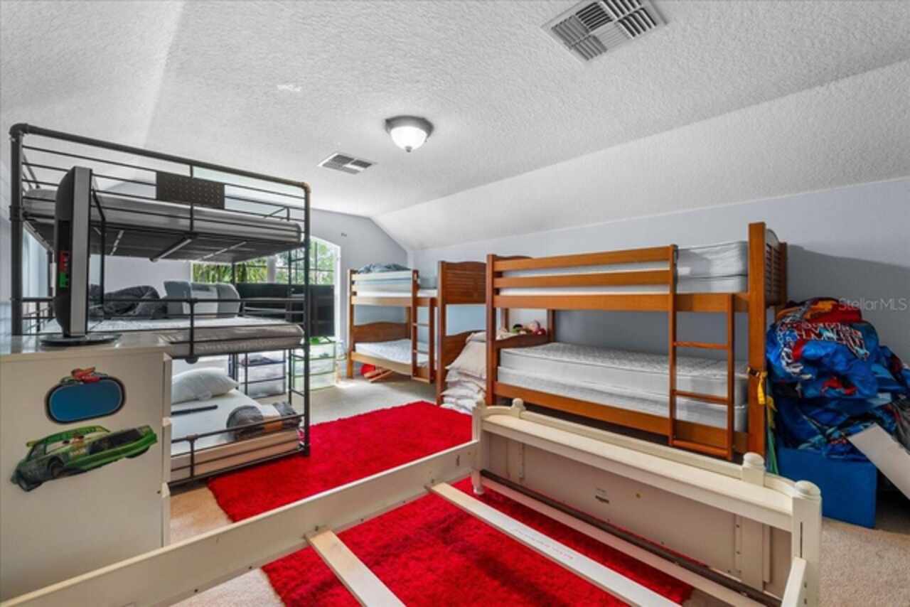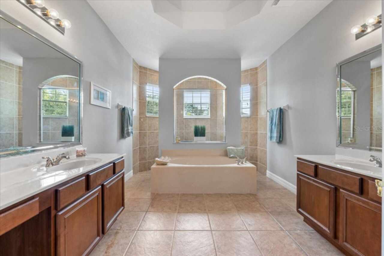 Welcome to your dream home in the highly sought-after, gated golf community of Bridgestone at Legends in Clermont! This stunning residence offers an impressive 3, 281 sq ft of beautifully designed living space with 5 spacious bedrooms, 3 full bathrooms and an office. From the moment you arrive, you’re greeted by lush landscaping, a paver driveway, and stately columns framing the grand entryway. Step inside to discover a bright, open-concept layout featuring two inviting living areas and a chef-inspired kitchen with ample counter space—ideal for entertaining or hosting family gatherings. One bedroom and bathroom act as a guest suite in the back of the home with private access. The upstairs bedroom has multiple possibilities if not needed as a bedroom. Could easily be a media room, office space, home gym, or play room The private office provides a quiet retreat for working from home, while the luxurious primary suite offers a true escape with a spa-like bathroom featuring dual showers, a relaxing garden tub, and dual vanities. Upgrades include newer A/C systems and roof, offering peace of mind for years to come. Enjoy resort-style living with access to top-tier community amenities: Golf course, tennis, bocce, pickleball, a stunning pool and spa, clubhouse, fitness center with group classes, walking and biking trails, and 24/7 manned security gate. Conveniently located just minutes from Orlando’s attractions, shopping, and dining—this home truly has it all. Don’t miss your chance to live in one of Clermont’s most sought after communities—schedule your private tour today!