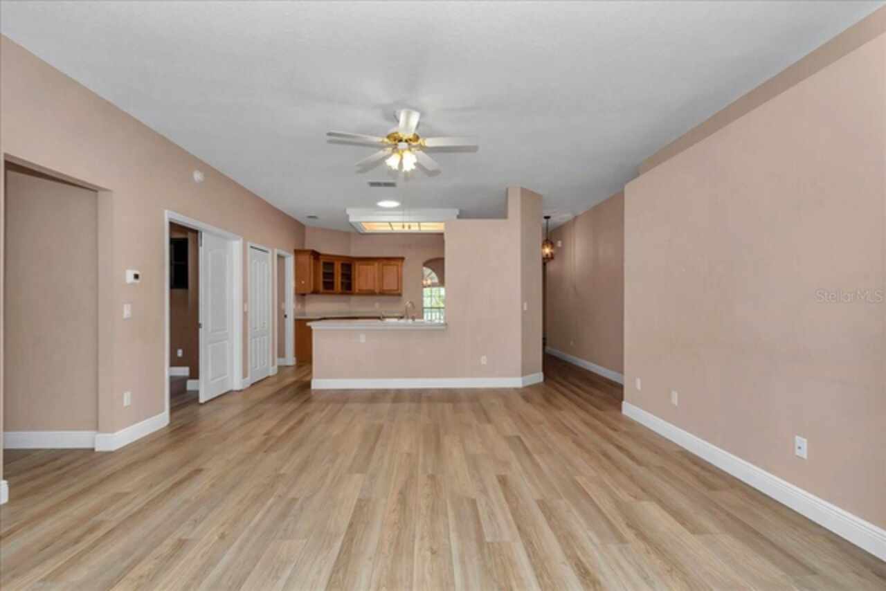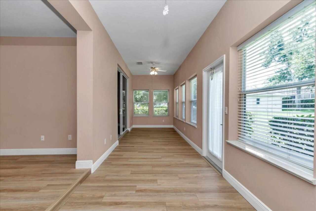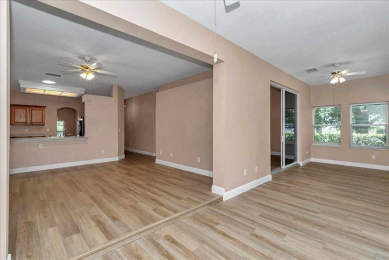 Welcome to the highly sought-after 55+ Kings Ridge golf community! This well-maintained 2-bedroom, 2-bath home features a versatile den, formal dining room, and an enclosed Florida room—perfect for year-round enjoyment. You'll love the new floors installed in 2024, and the kitchen offers extra cabinetry and extended countertops for added functionality. Situated on one of the larger lots in the neighborhood, the expansive yard provides added privacy and room to relax outdoors. The open floorplan offers natural light and flexible living areas to suit your lifestyle. Located in a guard-gated community with resort-style amenities, including golf courses, clubhouse, pools, pickleball, and dozens of social clubs—plus convenient golf cart access to shopping and dining. Don’t miss this rare opportunity in Kings Ridge!
