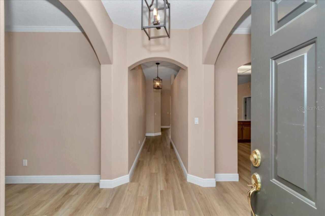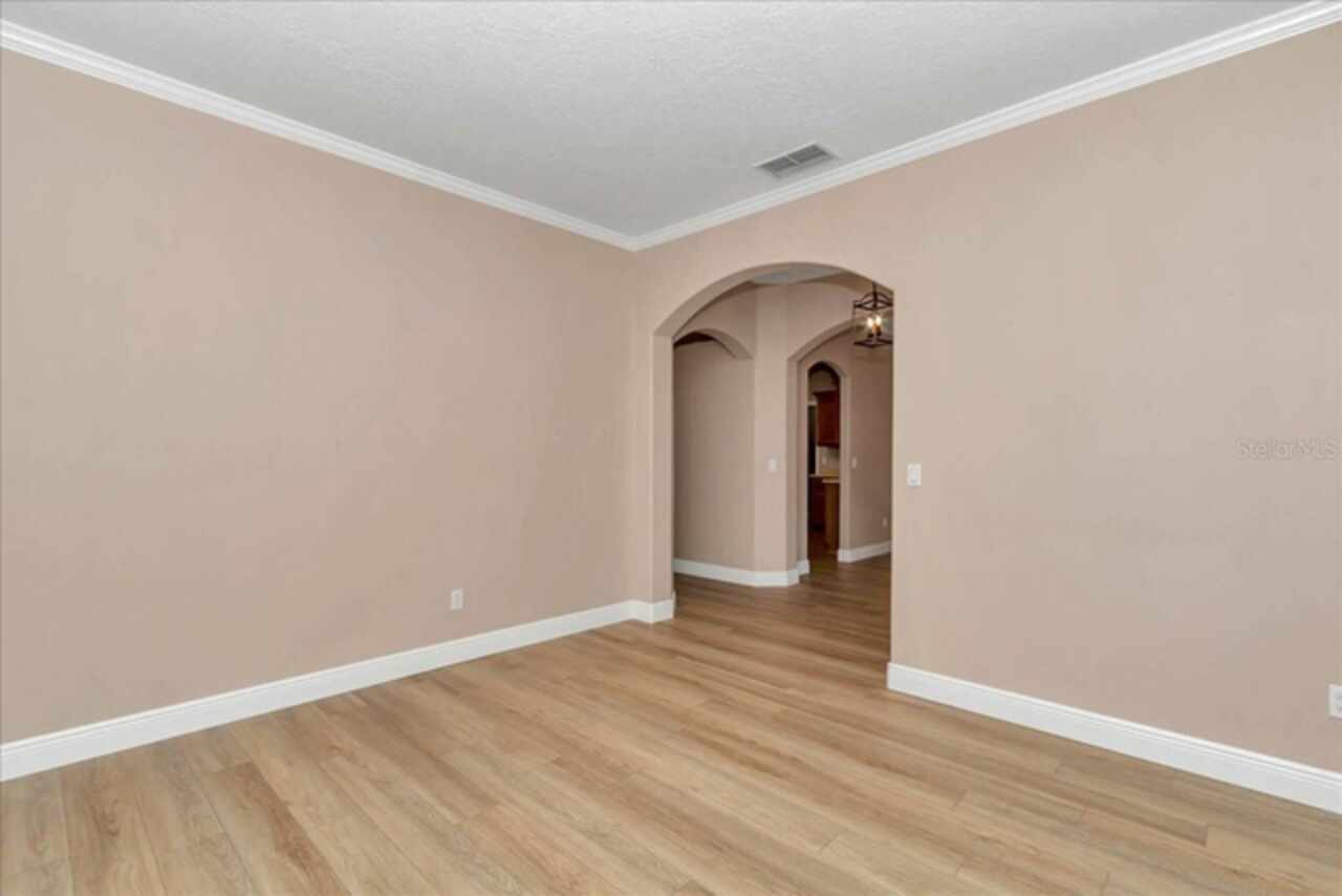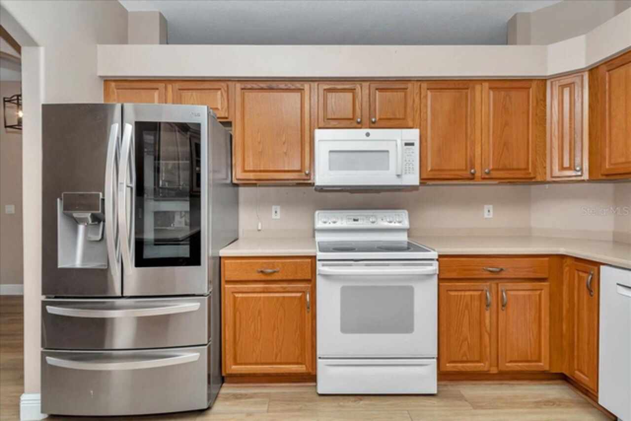 Welcome to the highly sought-after 55+ Kings Ridge golf community! This well-maintained 2-bedroom, 2-bath home features a versatile den, formal dining room, and an enclosed Florida room—perfect for year-round enjoyment. You'll love the new floors installed in 2024, and the kitchen offers extra cabinetry and extended countertops for added functionality. Situated on one of the larger lots in the neighborhood, the expansive yard provides added privacy and room to relax outdoors. The open floorplan offers natural light and flexible living areas to suit your lifestyle. Located in a guard-gated community with resort-style amenities, including golf courses, clubhouse, pools, pickleball, and dozens of social clubs—plus convenient golf cart access to shopping and dining. Don’t miss this rare opportunity in Kings Ridge!