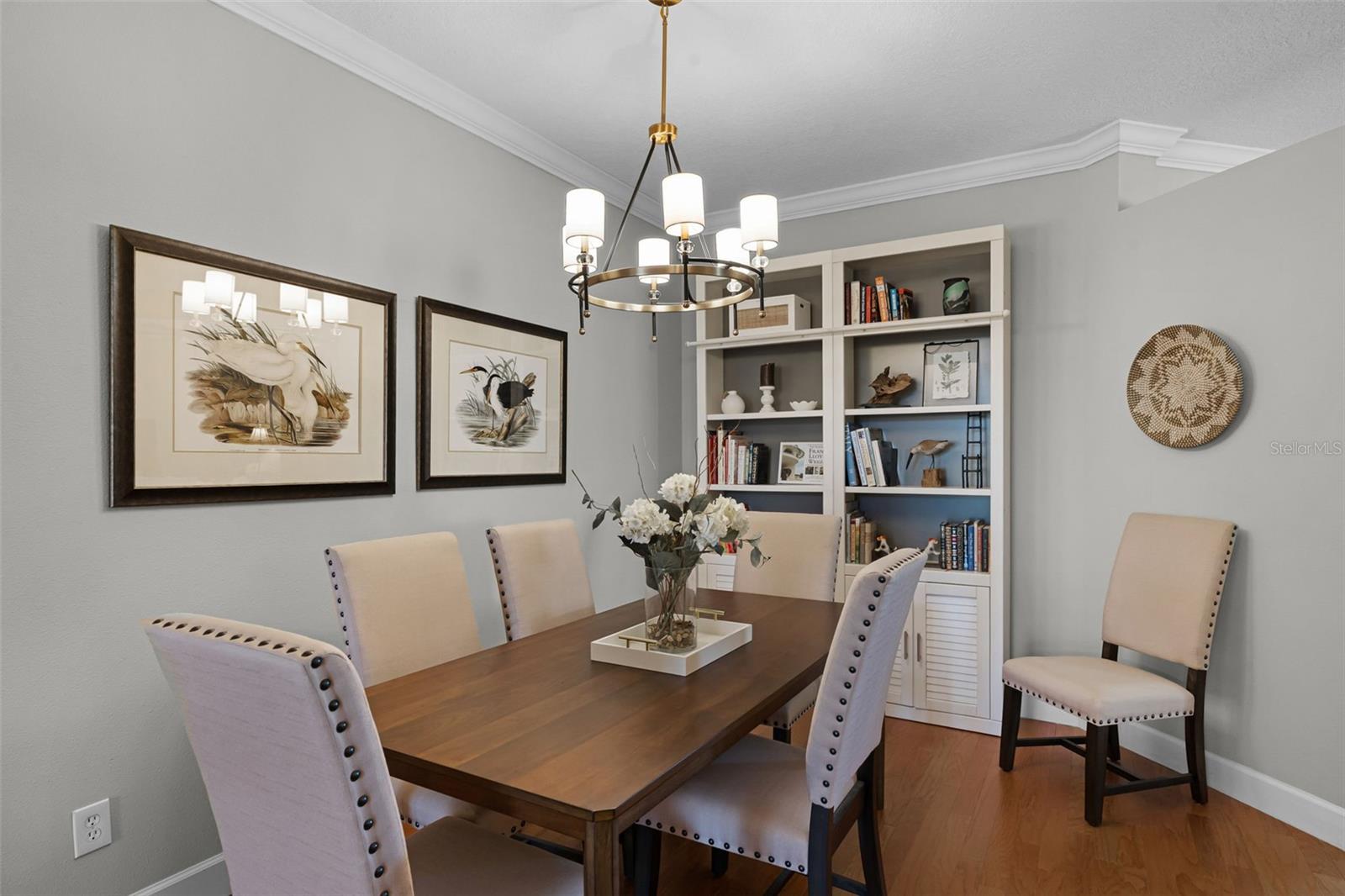 Ceiling Fans(s), Chair Rail, Crown Molding, Eat-in Kitchen, High Ceilings, Kitchen/Family Room Combo, Living Room/Dining Room Combo, Open Floorplan, Primary Bedroom Main Floor, Solid Wood Cabinets, Split Bedroom, Stone Counters, Thermostat, Walk-In Closet(s), Window Treatments