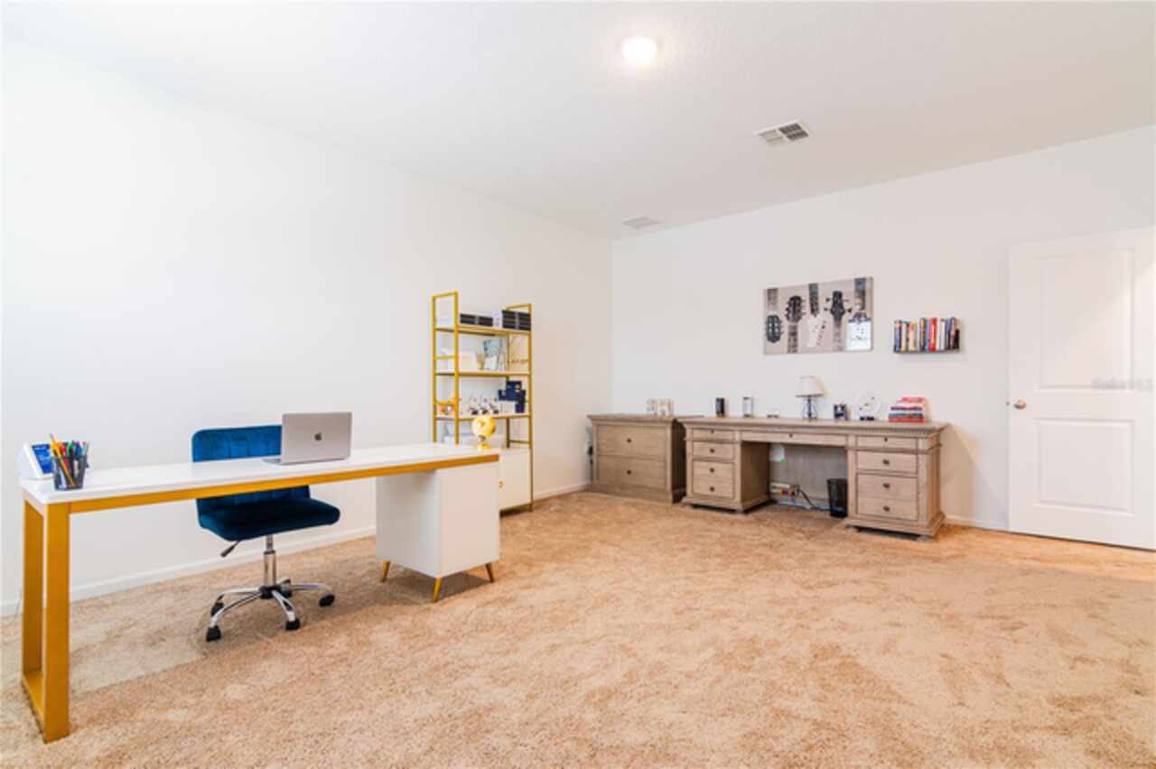 Welcome to 4371 Renly Lane! This spacious 6-bedroom, 4.5-bathroom home offers the perfect blend of comfort, function, and privacy. It features a large office that can easily be converted into a seventh bedroom, a generous loft with a wet bar (including a sink, cabinetry, and space for a mini fridge), and an oversized hallway closet for extra storage. The gourmet kitchen boasts a large island, ideal for entertaining and everyday living. Situated on a generous lot with no rear neighbors, the home backs up to a dry pond, providing open views and added tranquility. The expansive backyard offers great potential for building a private pool — and it also showcases stunning sunset views for you to enjoy every evening. Located in a well-maintained community with a swimming pool and internet included in the HOA fee. Don’t miss this opportunity to own a beautifully located and versatile home in Clermont!