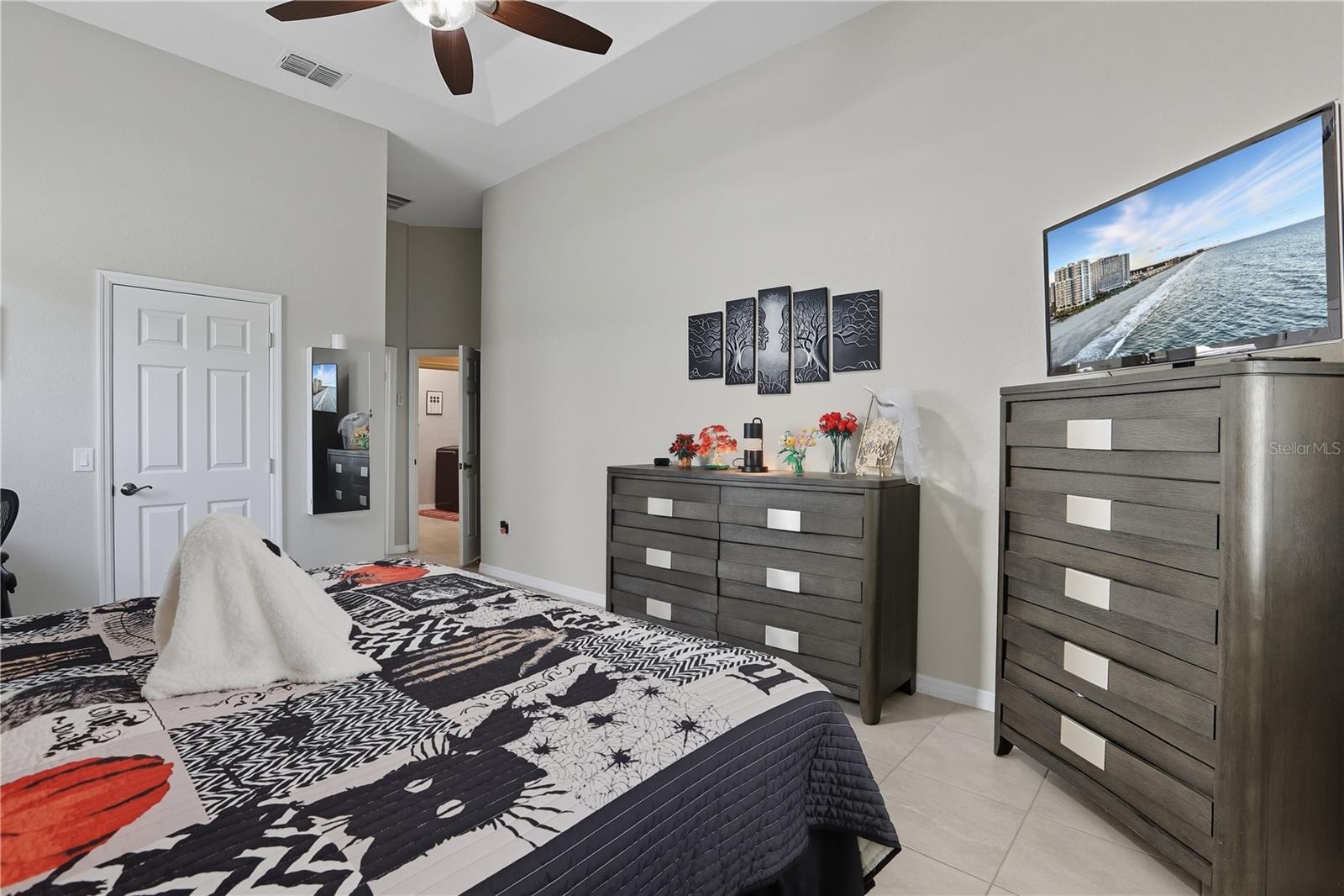 Ceiling Fans(s), High Ceilings, Primary Bedroom Main Floor, Split Bedroom, Thermostat, Tray Ceiling(s), Walk-In Closet(s)