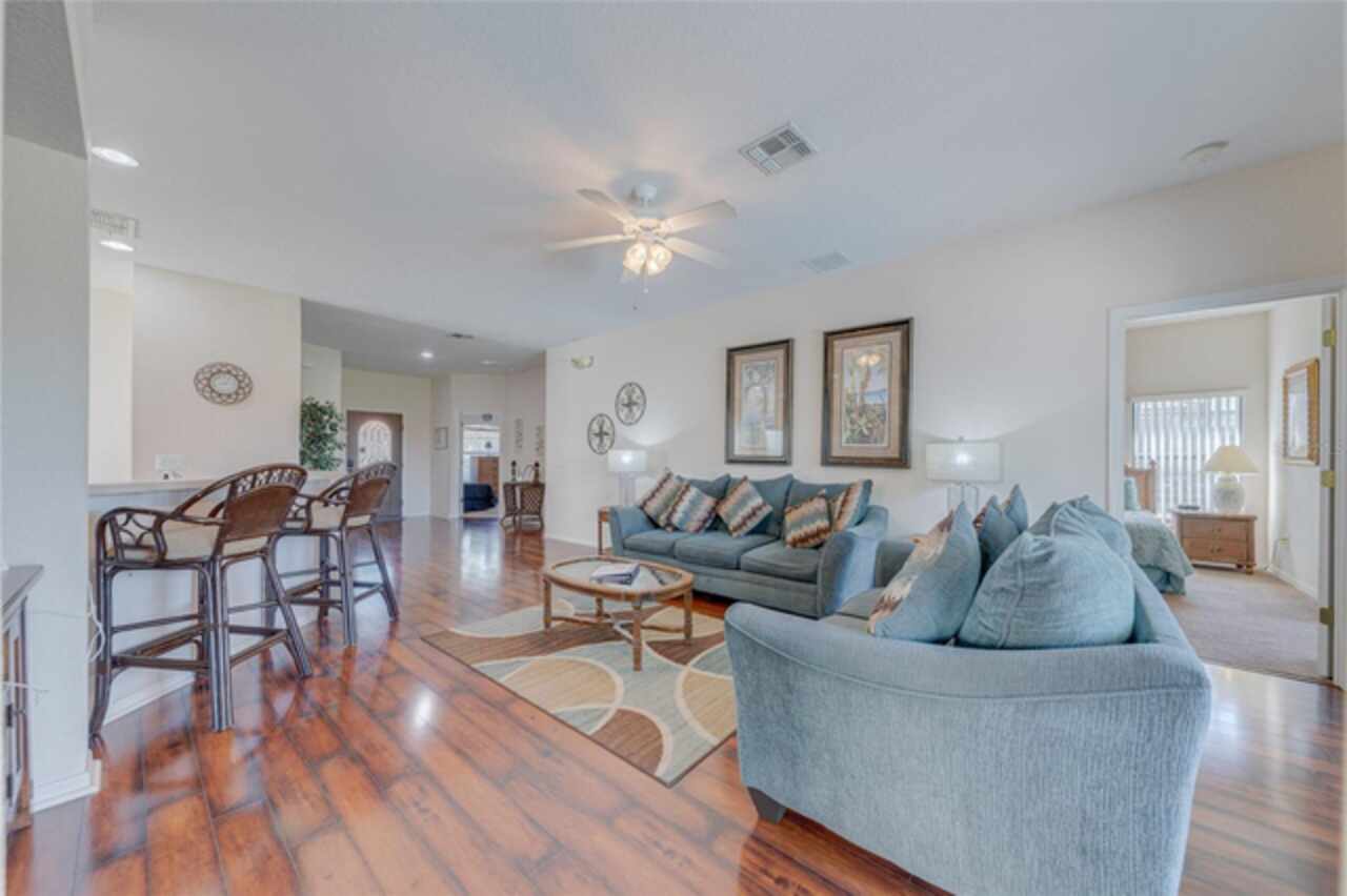 Stunning west-Facing 4-Bedroom heated Pool Home in Gated Resort Community – Minutes from Disney! Welcome to your dream retreat in the sought-after High Grove community of South Clermont! This beautifully maintained 4-bedroom, 3-bathroom Mediterranean-style pool home offers over 1, 600 square feet of bright, open living space and is FULLY FURNISHED—The home would also be perfect as a PRIMARY RESIDENCE, vacation getaway, or high-performing Airbnb investment. Step inside to an expansive open-concept floor plan with beautifully laminated floors where the light-filled family room flows effortlessly into the fully equipped kitchen featuring stainless steel appliances and dining area, a breakfast bar, ideal for entertaining or relaxing with loved ones. This home has been very well maintained. The home exterior was painted in 2022. The A/c was replaced in 2021 and the roof replaced in 2019. Lawn service is provided by the HOA. Enjoy seamless indoor-outdoor living with sweeping views of your private screened-in pool/spa and patio from the main open plan living areas. This home has no rear neighbors with beautiful open views. The home also boasts 2 primary bedroom both with ensuites, one of which doubles as a convenient guest/pool bathroom adding extra functionality. Bedrooms 3 and 4 share a Jack & Jill bathroom. Located in a gated community just minutes from Walt Disney World, this home offers access to resort-style amenities including a clubhouse, large community pool, fitness center, game room, toddler play area, and even a neighborhood pub just a short stroll away. High Grove is zoned for short-term rentals, and this home is a turnkey, income-producing Airbnb with an active booking history and property management in place. Mediterranean-style architecture, tile roofs, and HOA-included landscaping give the neighborhood a clean, uniform appeal with minimal upkeep. Enjoy unmatched convenience with easy access to US-192, Hwy 27, I-4, and all the top attractions, beaches, airports, and shopping that Central Florida has. ?? Don’t miss this exceptional opportunity—schedule your private tour today and claim your slice of paradise!