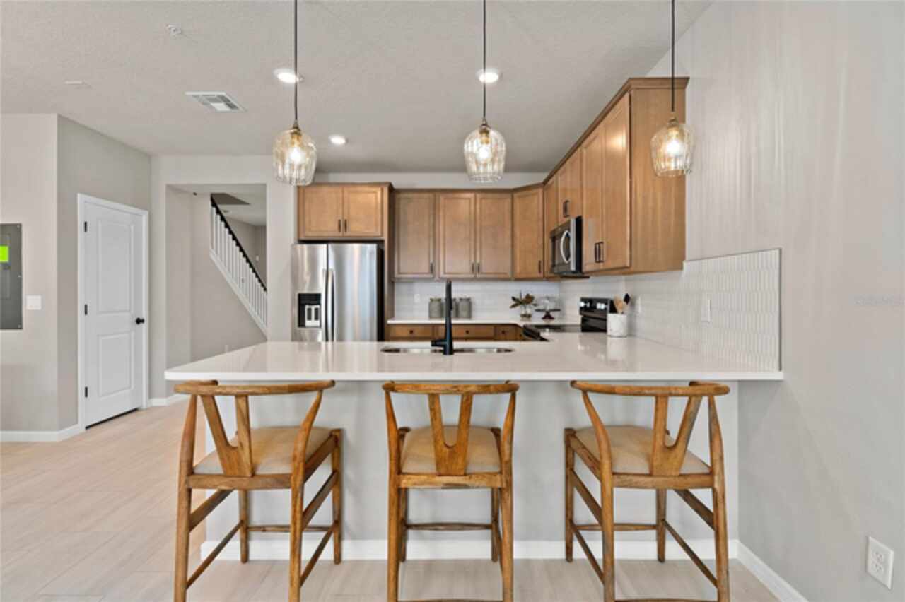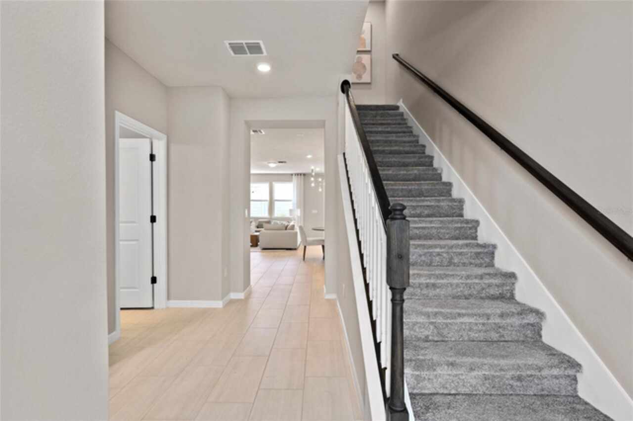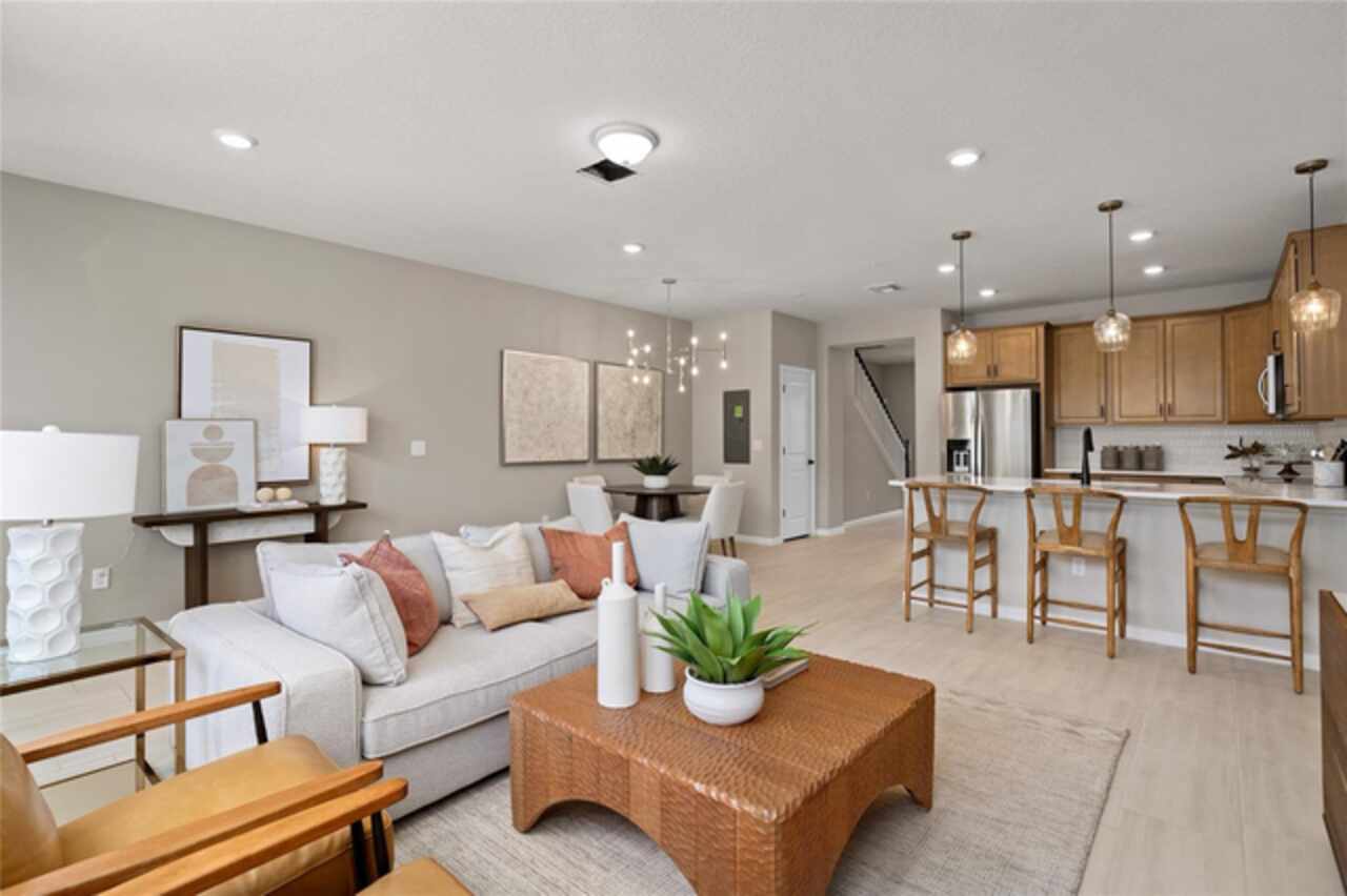 Under Construction. Welcome to Parkside Trails! Explore the charm of this premier Clermont location, offering exclusive amenities and quick access to shopping, dining, and entertainment. With a mix of new construction, single-family and townhomes, plus a variety of exclusive amenities, families will love coming home. Now Selling Onsite with 4 Models Open Daily! At Pulte, we design homes with your lifestyle in mind, creating spaces that elevate both comfort and convenience. The spacious Trailwood townhome is a perfect blend of luxury and practicality, featuring 4 bedrooms, 3 bathrooms, a 2-car rear-load garage, and a private courtyard—ideal for both relaxation and entertaining. The open-concept first floor is a true highlight, with an expansive gathering room seamlessly flowing into the beautifully appointed kitchen. This chef-inspired space features soft-close Tilden White cabinetry, stunning Pearl Jasmine quartz countertops, and a decorative Mosaic White tile backsplash. Stainless-steel Whirlpool appliances, including a refrigerator, a Volcano Gray single-bowl sink with an upgraded faucet enhance both the functionality and style of the kitchen. Step outside through the gathering room to your private courtyard, an inviting outdoor space perfect for enjoying the fresh air in a tranquil setting. Also located on the first floor is a convenient bedroom and full bathroom, complete with an enclosed shower with a glass door, ensuring comfort and privacy for guests. For ultimate relaxation, the owner's suite is located on the second floor, offering ample natural light, a spacious walk-in closet, and a spa-inspired en suite bathroom. The owner’s bathroom is a serene escape, featuring quartz-topped dual vanity sinks, a frameless glass door shower, a linen closet, and a private enclosed toilet. The second floor also includes two additional bedrooms, a full bathroom, and a laundry room, offering thoughtful separation for privacy and convenience. Wood-look tile flooring spans the first floor living areas, providing both style and durability, also in the laundry room and bathrooms adds a sleek, modern touch. Plush, stain-resistant Ornamental Gate carpet completes the bedrooms, and staircase for added comfort. Experience the luxury and convenience of the popular Trailwood interior-unit townhome. Don’t miss your chance to make this stunning home yours!