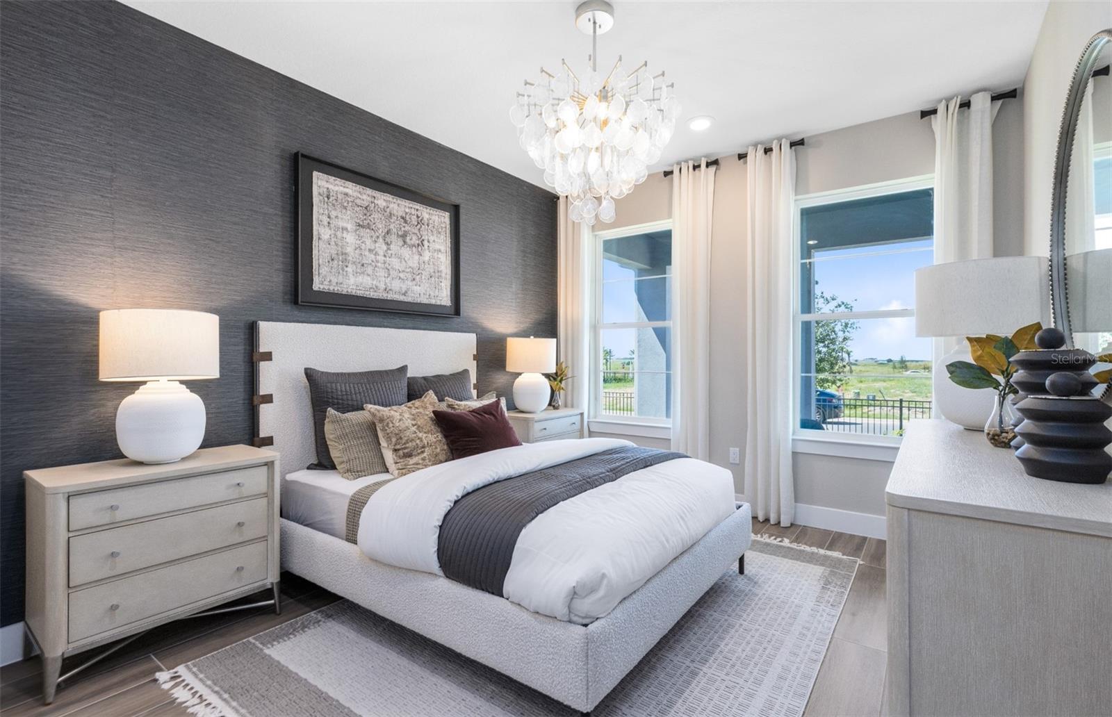 Under Construction. Welcome to Parkside Trails! Explore the charm of this premier Clermont location, offering exclusive amenities and quick access to shopping, dining, and entertainment. With a mix of new construction, single-family and townhomes, plus a variety of exclusive amenities, families will love coming home. Now Selling Onsite with 4 Models Open Daily! Step into the Scarlett by Pulte Homes, this stunning 5-bedroom, 4.5-bathroom, 2 car garage residence situated on a homesite with no rear neighbors offers a seamless blend of sophistication and comfort, with every detail thoughtfully designed to elevate your living experience. The open-concept layout creates a spacious and airy environment, enhanced by an abundance of natural light and luxurious finishes. On the first floor, discover an en suite bedroom with attached bathroom, featuring a glass enclosed shower, linen closet, exquisite quartz countertops, and a walk-in closet, providing a private and inviting retreat for guests. As you continue into the home, an open flex room, located next to the gathering room, allows natural light to flood the area, making it the perfect spot for relaxation or entertaining. If you need a private office, there is also a second enclosed flex room for all of your needs. The heart of this home is the gourmet kitchen, stylish two-tone cabinetry beautifully complements the striking quartz countertops and decorative tile backsplash. Soft-close drawers, easy-access cabinets, single-bowl granite sink, and upgraded faucet, and Whirlpool built-in stainless-steel appliances, including a refrigerator combine to create a chef-inspired space designed for both form and function. The kitchen seamlessly flows into the café and gathering room, with a pocket sliding glass door that opens to the covered lanai, enhancing the indoor-outdoor living experience. For added convenience and privacy, you’ll find a powder room for guests located on the first floor. Upstairs, the tranquil owner’s suite serves as a private sanctuary, featuring a spacious walk-in closet and a spa-like en suite bathroom with dual vanity sinks. The loft area offers an ideal space for relaxation, whether for a quiet evening or a movie night. The second floor also includes three additional bedrooms, two bathrooms (one of which is an en suite), and a conveniently located laundry room, making daily living effortlessly easy. The laundry room itself offers both style and convenience with built-in cabinets for additional storage, Whirlpool washer and dryer, and a utility sink trimmed in quartz, adding a touch of elegance to everyday tasks. This home is crafted with high-end touches, such as Shaw brand wood-look luxury vinyl plank flooring throughout the first floor living areas and staircase, tile flooring in the bathrooms and laundry room, and plush, stain-resistant Shaw carpet in the loft and bedrooms. From the oil rubbed bronze hardware finishes and 8' interior doors, to the Wrought Iron Balusters with Oak Handrail at the staircase no detail is overlooked. 2” faux wood blinds, rain gutters, and Sherwin Williams City Loft interior paint add both style and ease to daily living. This home also comes equipped with a variety of modern conveniences, including a smart thermostat, video doorbell, LED downlights, and electric car plug in. With its exceptional design and sophisticated finishes, this Scarlett home is the epitome of both comfort and luxury—perfectly tailored to fit your lifestyle.