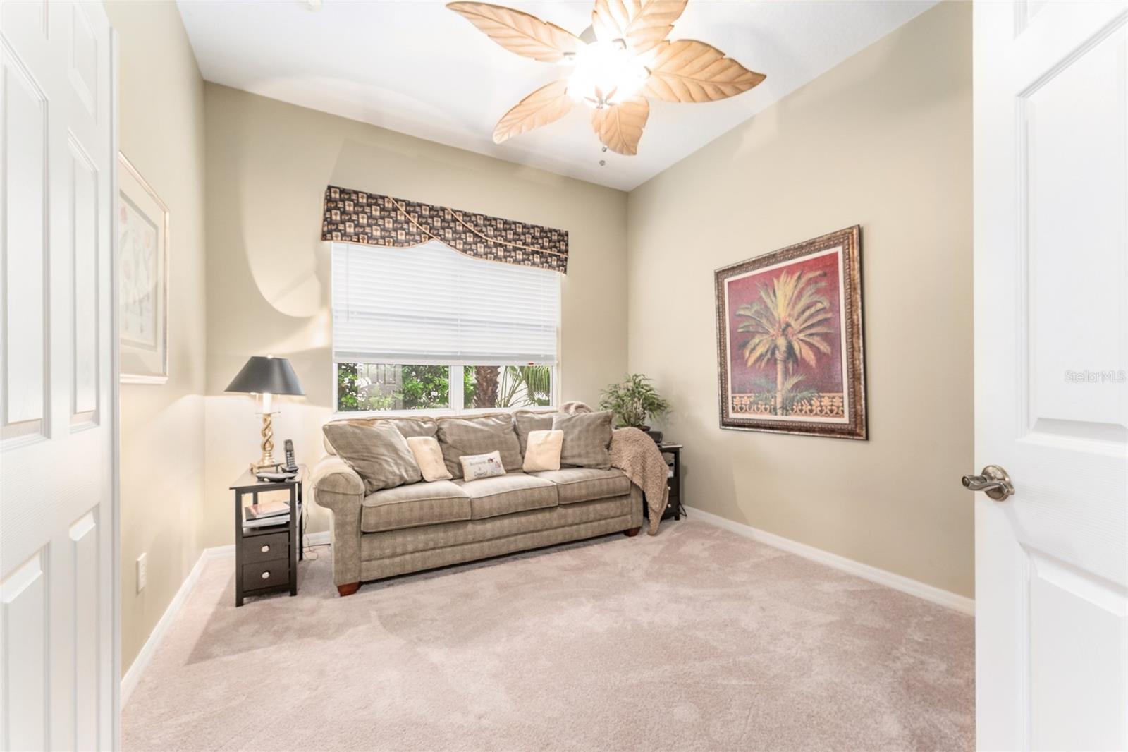 Welcome to this beautifully crafted 3-bedroom, 2 bath block home located directly on the 15th green of a premier golf course all within a gated and secured community. Offering an open, flowing layout, designer finishes, and a peaceful screened lanai with lush golf course views, this home captures the essence of luxury and leisure. Interior features include 2-bedrooms + den thats ideal for guest, an office, or creative space. 2 full baths, including a luxurious designer en-suite in the master bedroom. The open-concept kitchen and living room with bright natural light and modern finishes. Tile and luxury flooring throughout for easy care and comfort. In closet laundry and 2-car garage. Outdoor community perks include clay tennis courts, new pickle ball courts and year round heated indoor and outdoor swimming pool. All this in one of the areas most desirable resort style communities, this home offers an unmatched lifestyle and both comfort and recreation at your doorstep. The roof was replaced in 2019, lanai rescreened in 2023, air conditioner/furnace replaced in 2014, house repainted in 2025 and replaced water heater.