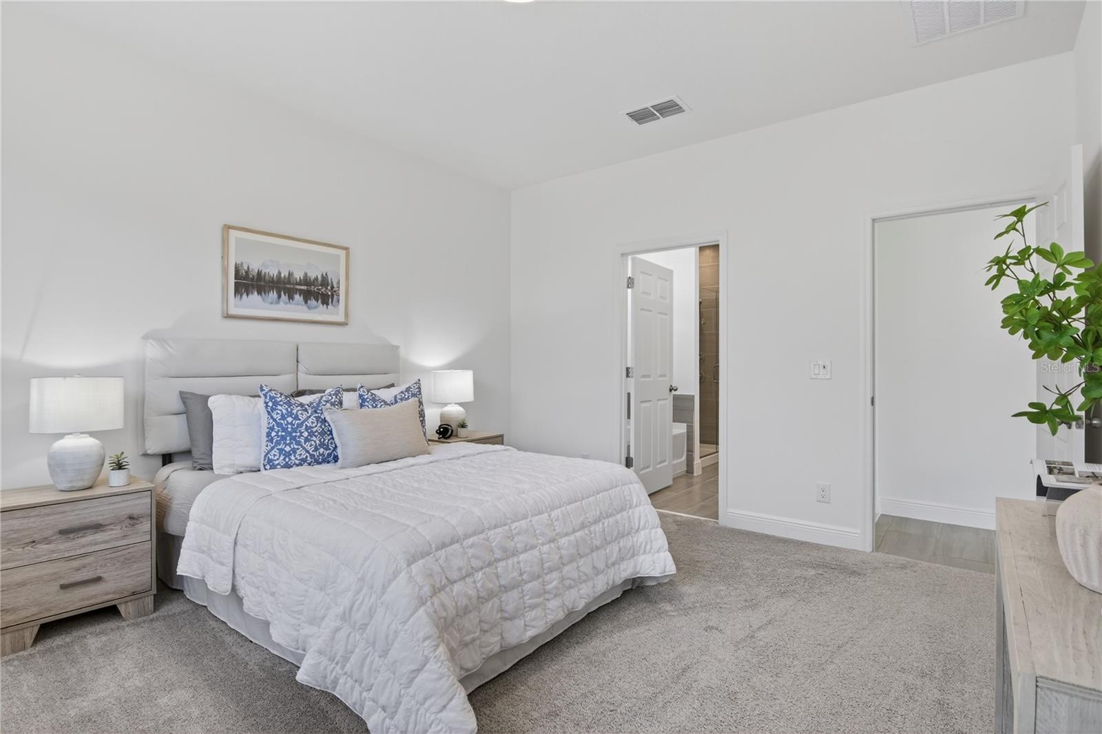 High Ceilings, Kitchen/Family Room Combo, Open Floorplan, Solid Surface Counters, Split Bedroom, Walk-In Closet(s)