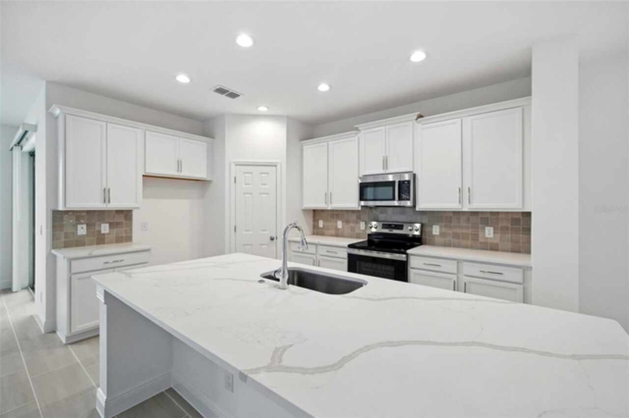 Experience breathtaking scenic views from this stunning new 5 Bedroom, 3 Bath home! Thoughtfully designed with a front Living Room/Flex Space and an expansive second-floor Game Room/Bonus Room, perfect for entertaining or relaxing. Enjoy 9'4" ceilings on the first floor and 5 1/4" baseboards throughout for a spacious, refined feel. The upgraded kitchen features elegant 42" cabinets with crown molding, quartz countertops, a stylish tile backsplash, and stainless steel appliances. The luxurious primary suite offers a spa-like ensuite bath featuring adult-height vanity with dual sinks and quartz countertops, oversized walk-in closet, and shower with frameless glass enclosure and upgraded wall tile surround. A rare combination of space, style, and unforgettable views—this home is a must-see! The beautiful Ridgeview Community offers great amenities including Pool and Playground, and is located directly across from Lake Louisa State Park, right next door to the new Olympus Project, and has direct access to Schofield Road, the new connection between Clermont and Winter Garden. Community is conveniently located close to shopping and dining, with easy access to major thoroughfares.