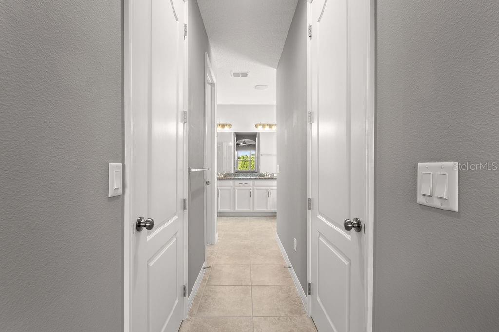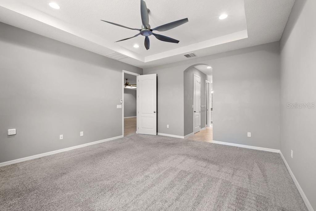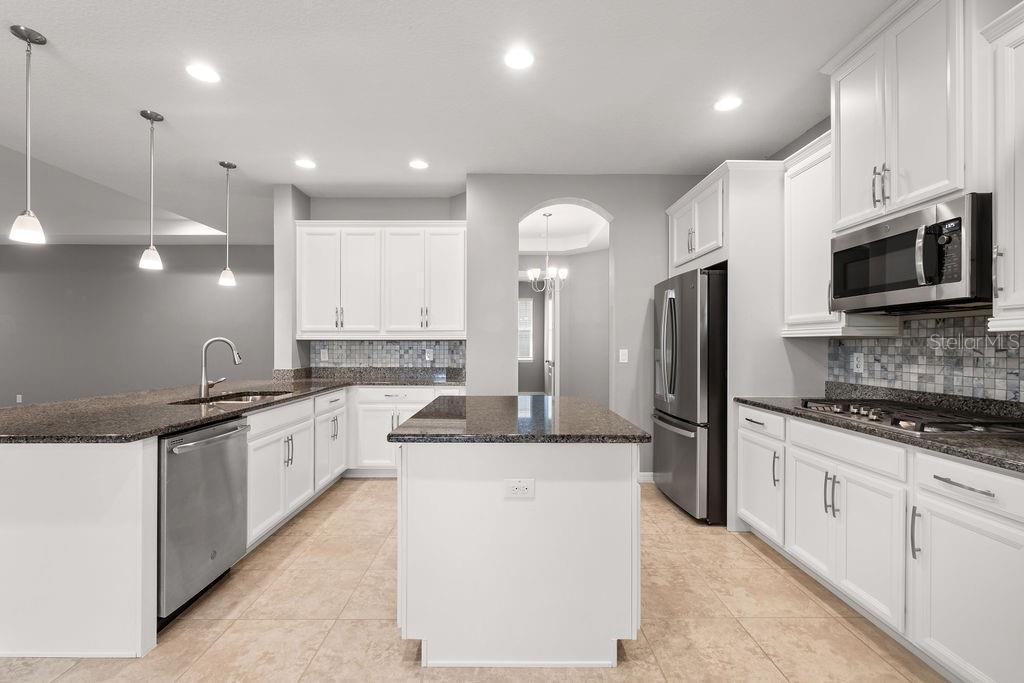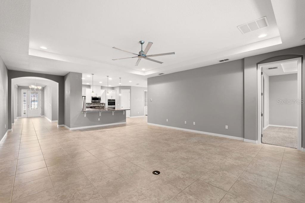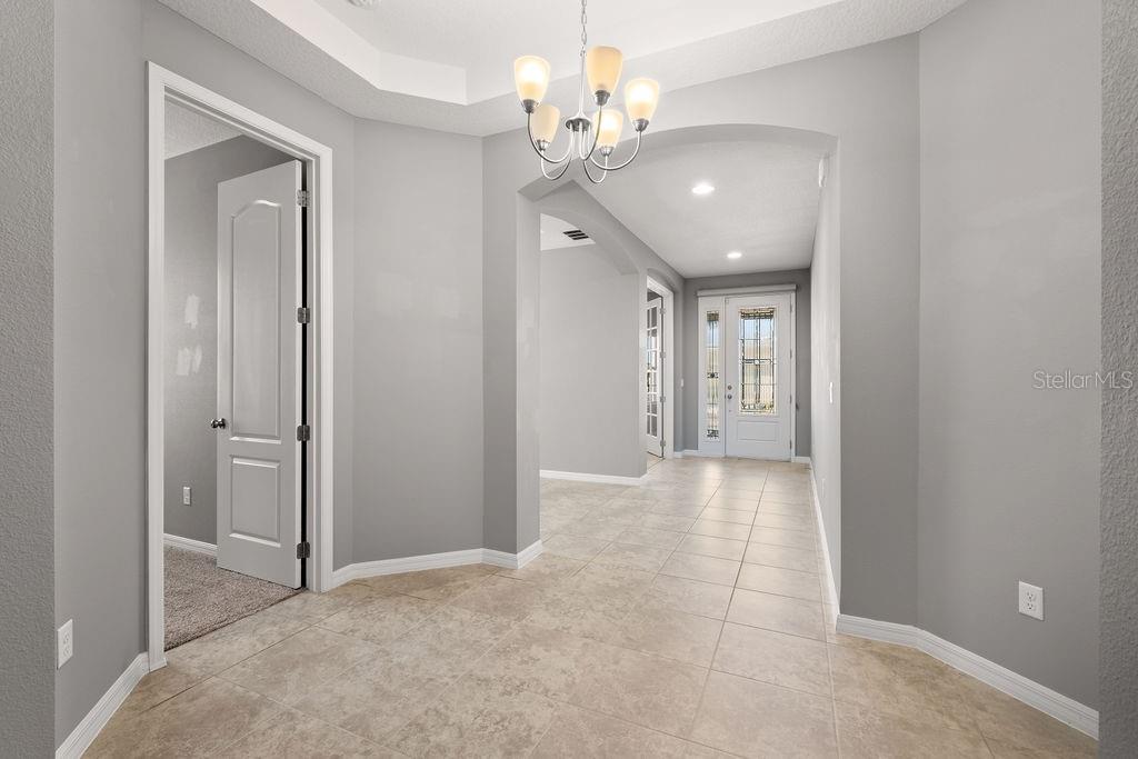 Beautiful 4 bedroom, 3 bath home located in the highly sought-after Highland Ranch community of Clermont. This home offers a spacious split floor plan with 8-foot doors throughout, elegant arch entryways, and tray ceilings in both the living room and master suite. The open design features a large great room with a 3-panel sliding glass door that opens to a screened lanai with a ceiling fan, creating the perfect space for indoor and outdoor entertaining. The gourmet kitchen is equipped with granite countertops, 42-inch cabinets, pendant lighting, a double oven, gas range, stainless steel appliances including a 3-door refrigerator, and a dinette space with tile flooring. A separate formal space that could be used for a dining room or formal living room also features tile flooring, providing plenty of space for gatherings. The primary bedroom suite includes double closets and a luxurious en-suite bath, while the secondary bedrooms are connected by a convenient Jack and Jill bathroom. An additional office or den with double French doors offers flexible living space. Additional highlights include tile flooring throughout the main living areas, a 3-car garage, washer and dryer, paver driveway and walkway with a welcoming glass front door. The home is also equipped with solar power system for energy efficiency. Highland Ranch is one of Clermont’s most desirable neighborhoods, known for its rolling hills, scenic walking trails, resort-style amenities, and convenient location near shopping, dining, schools, and major highways for an easy commute to Orlando and surrounding areas. This home combines modern features with an ideal location, making it truly move-in ready.