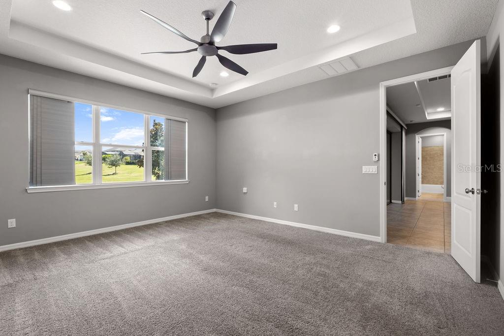 Ceiling Fans(s), High Ceilings, Open Floorplan, Primary Bedroom Main Floor, Stone Counters, Thermostat, Tray Ceiling(s), Walk-In Closet(s), Window Treatments