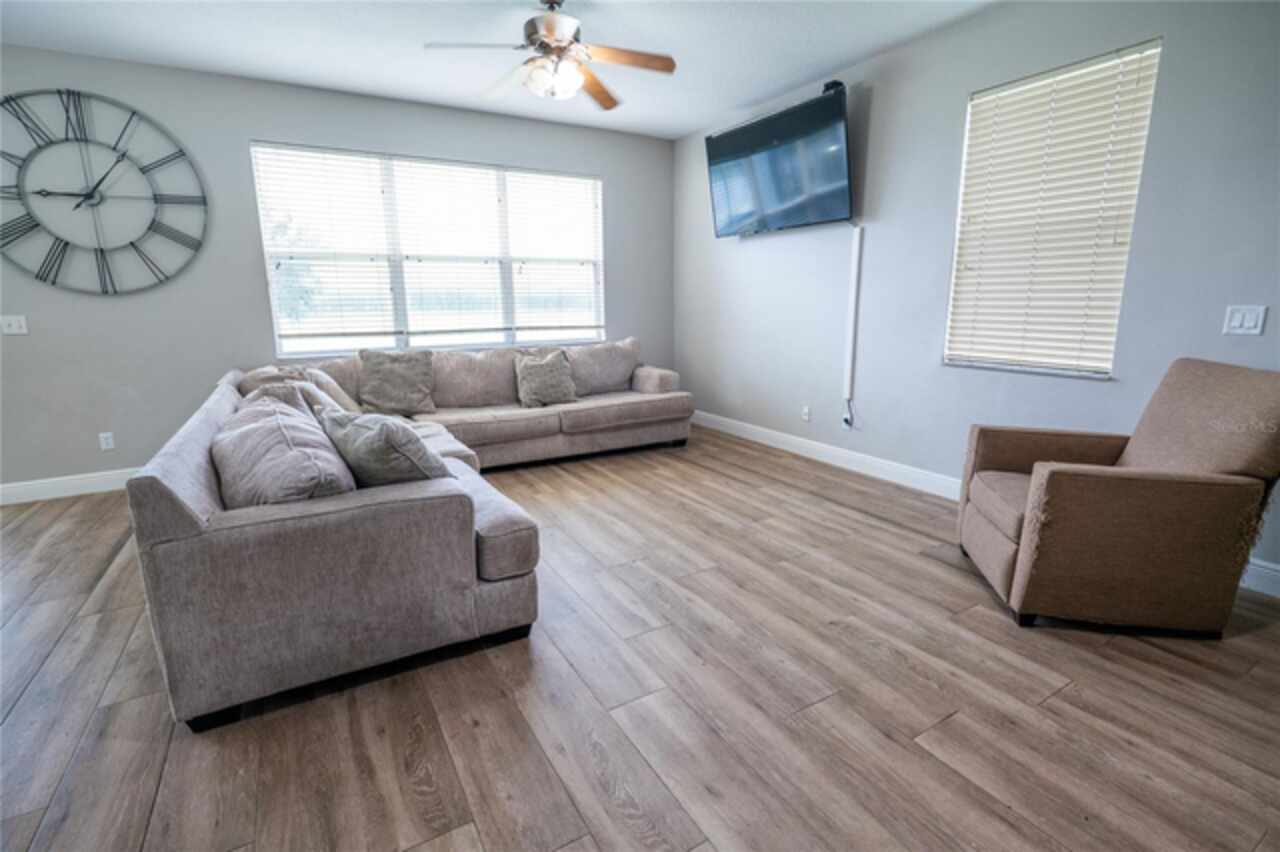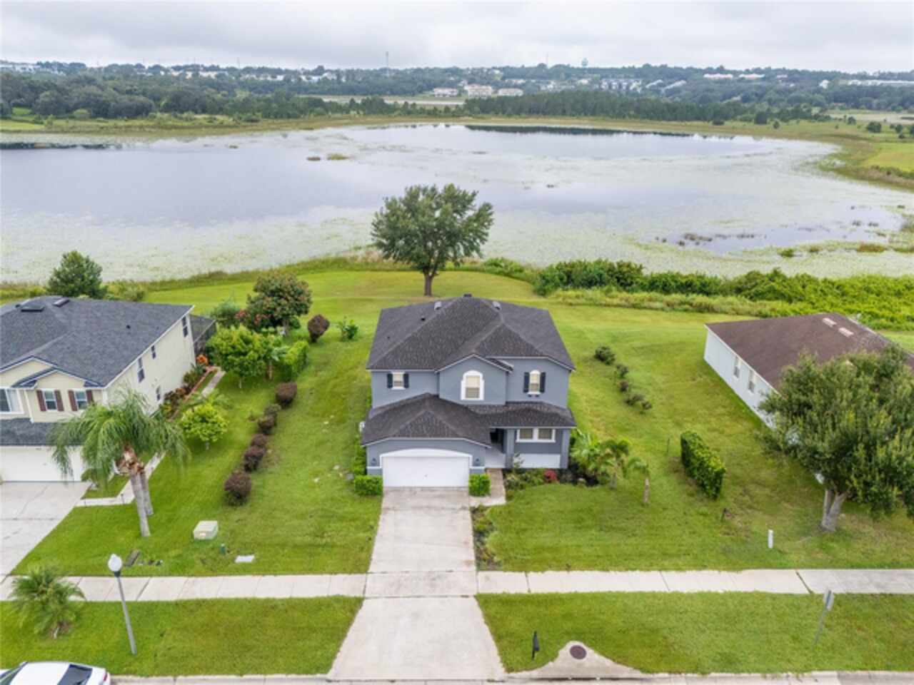 Step inside this home from anywhere! To experience a fully immersive walk-through of this home click on the Video or Virtual Tour button on this page. Live Lakefront in Style at Lakeview Pointe! Welcome to this stunning three-bedroom, two-and-a-half-bath lakefront home nestled on over a third of an acre in the highly sought-after Lakeview Pointe community in Clermont. Offering a blend of modern upgrades, spacious living, and breathtaking views of Jack’s Lake, this home is the perfect retreat for those seeking comfort and convenience. As you arrive, you’ll be greeted by a long private driveway and covered front patio that create a welcoming first impression. Step inside to discover a light-filled, open-concept floor plan with high ceilings and tile flooring throughout the main level. The expansive living and family room combination provides ample space for gathering, entertaining, or relaxing. The heart of the home is the gourmet kitchen, beautifully updated with white shaker cabinets, quartz countertops, a spacious island with bar seating, stainless steel appliances, and a stylish modern backsplash. Enjoy meals with a view in the cozy dining area overlooking the water. Downstairs also features a convenient half bath and a large laundry room complete with cabinetry and counter space. Upstairs, a versatile loft area awaits — ideal for a playroom, home office, or media space and vinyl flooring throughout. The primary suite is a peaceful retreat with tray ceiling, a large walk-in closet, and breathtaking lake views. The en-suite bath includes his and her vanities, a soaking tub, and a glass-enclosed walk-in shower. Two additional bedrooms are generously sized, each with ceiling fans and ample closet space, and they share a full bath with a tub/shower combo. Step through the sliding glass doors to the screened-in back patio, the perfect spot for enjoying morning coffee or evening tranquility. The huge backyard leads to the water’s edge of Jack’s Lake, known for great fishing and scenic beauty. With east-facing front exposure, you’ll enjoy spectacular sunset views over the lake. Recent upgrades include a new roof (2023) and AC unit (2021) for added peace of mind. Located in the heart of Clermont, you’re just minutes from top-rated schools, shopping, dining, medical facilities, and major roadways. Don’t miss your chance to live the lakefront lifestyle — schedule your private showing today and make this your forever home!