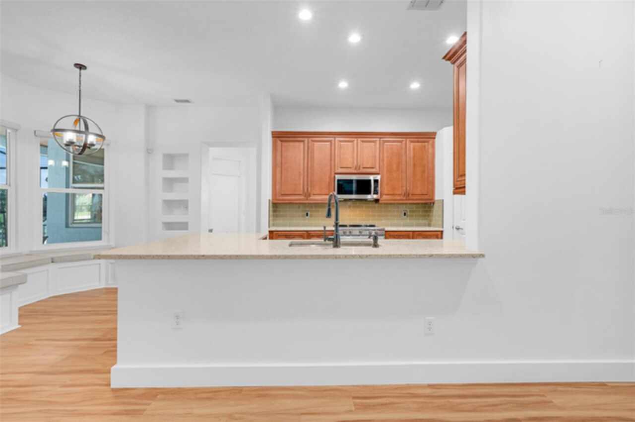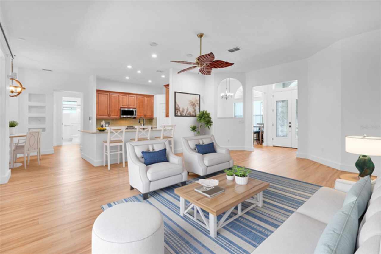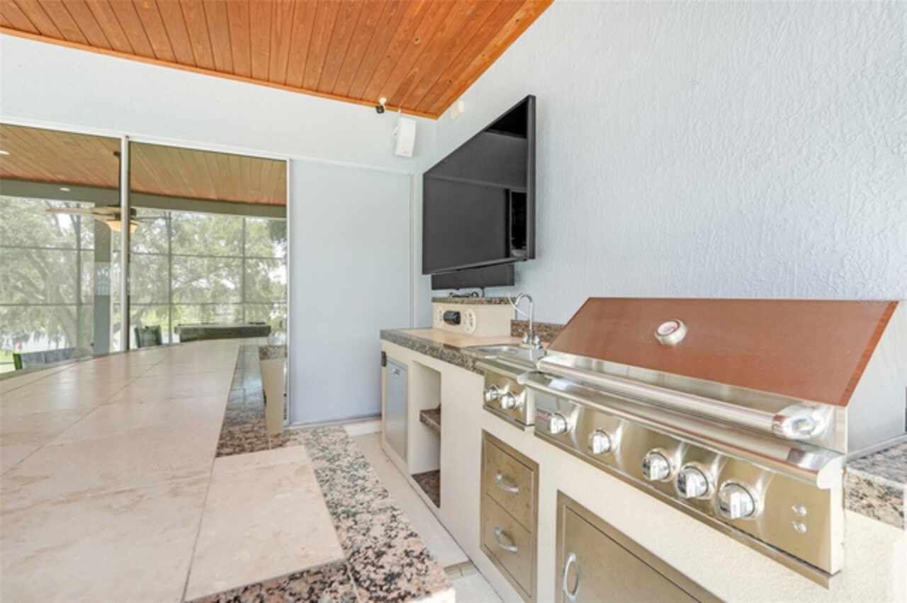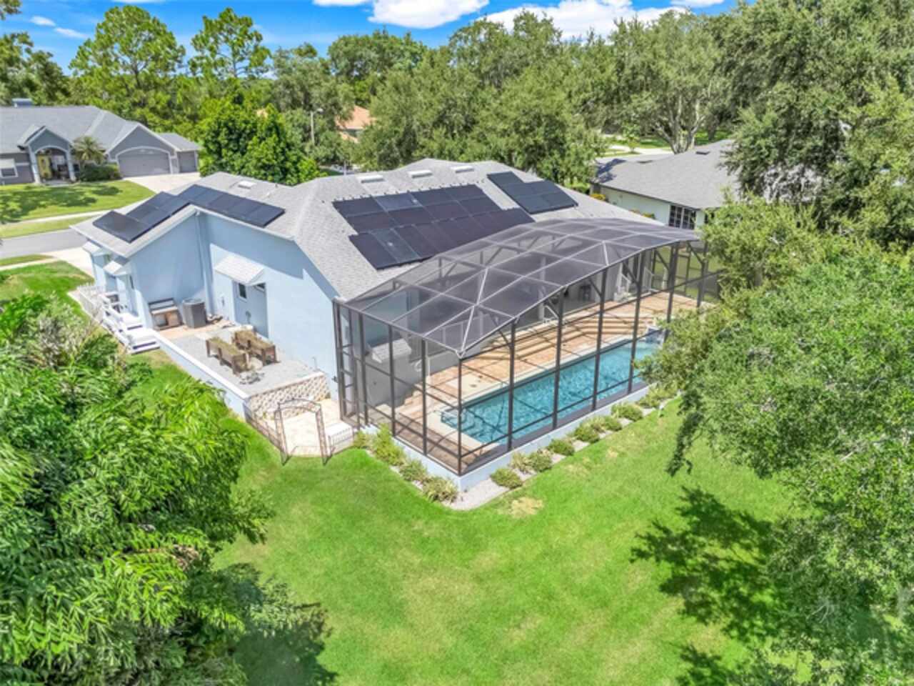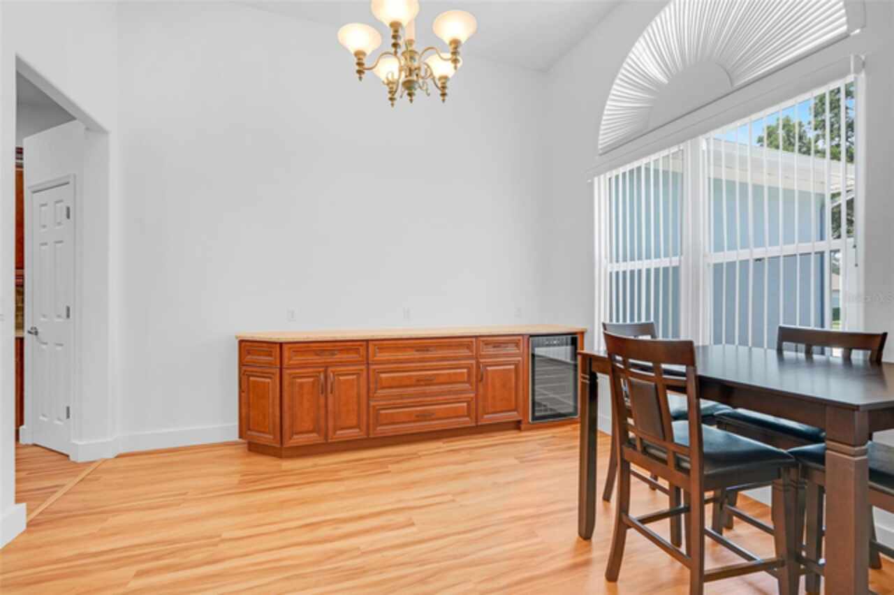 Under contract-accepting backup offers. One or more photo(s) has been virtually staged. Located in the desirable Green Valley community in Clermont, this stunning 3-bedroom, 2-bath home sits on a quiet cul-de-sac and has been completely renovated from top to bottom, offering modern elegance paired with breathtaking golf course and lake views. From the moment you step through the front door, you’re greeted with a striking open floor plan where your eyes travel straight through the living room, across the sparkling pool, and out to the serene lake and golf course beyond. The chef’s kitchen has been fully renovated with custom cabinetry, quartz counters, stainless steel appliances, and a charming breakfast nook with a built-in storage bench overlooking the pool. Just off the kitchen, the dining room showcases a custom built-in buffet with wine cooler, adding both style and function while creating the perfect space for entertaining. The private master suite is positioned at the back of the home, designed to maximize both comfort and views. Elegant French doors lead directly to the lanai and pool area, inviting in natural light and offering a seamless indoor-outdoor lifestyle. The renovated en-suite bathroom showcases a modern shower, cabinetry, and upgraded flooring. Both secondary bedrooms are generously sized and share a beautifully updated second bathroom that has been completely redesigned with updated walk-in shower, cabinetry, and flooring. Step outside to your own private resort: a heated, saltwater pool anchors the expansive lanai. Designed with entertaining in mind, the outdoor area features multi-level decking with detailed brick pavers, creating plenty of space for lounging, dining, or gathering with friends and family. The covered entertaining area showcases a beautiful wood-paneled ceiling with dual fans. Completing this resort-like retreat is the fully equipped outdoor kitchen with tile countertops, built-in grill, refrigerator, bar seating, sink, and mounted TV, ensuring every occasion is unforgettable—all while overlooking the lush greens and shimmering lake. Every major system and detail has been thoughtfully updated, including: FULLY PAID OFF WHOLE HOUSE SOLAR, GENERAC WHOLE HOUSE GENERATOR, A/C UNIT 2020, WHOLE HOUSE REPIPE 2018, WINDOWS REPLACED 2018, WATER TREATMENT SYSTEM, WELL FOR IRRIGATION, EPOXY COATED GARAGE FLOOR, NEWER GARAGE DOORS & POOL RESURFACED AND RESCREENED. Whether it’s morning coffee with a view, entertaining friends poolside, or enjoying peaceful evenings by the water, this home delivers the ultimate golf-front Florida lifestyle. Call today!