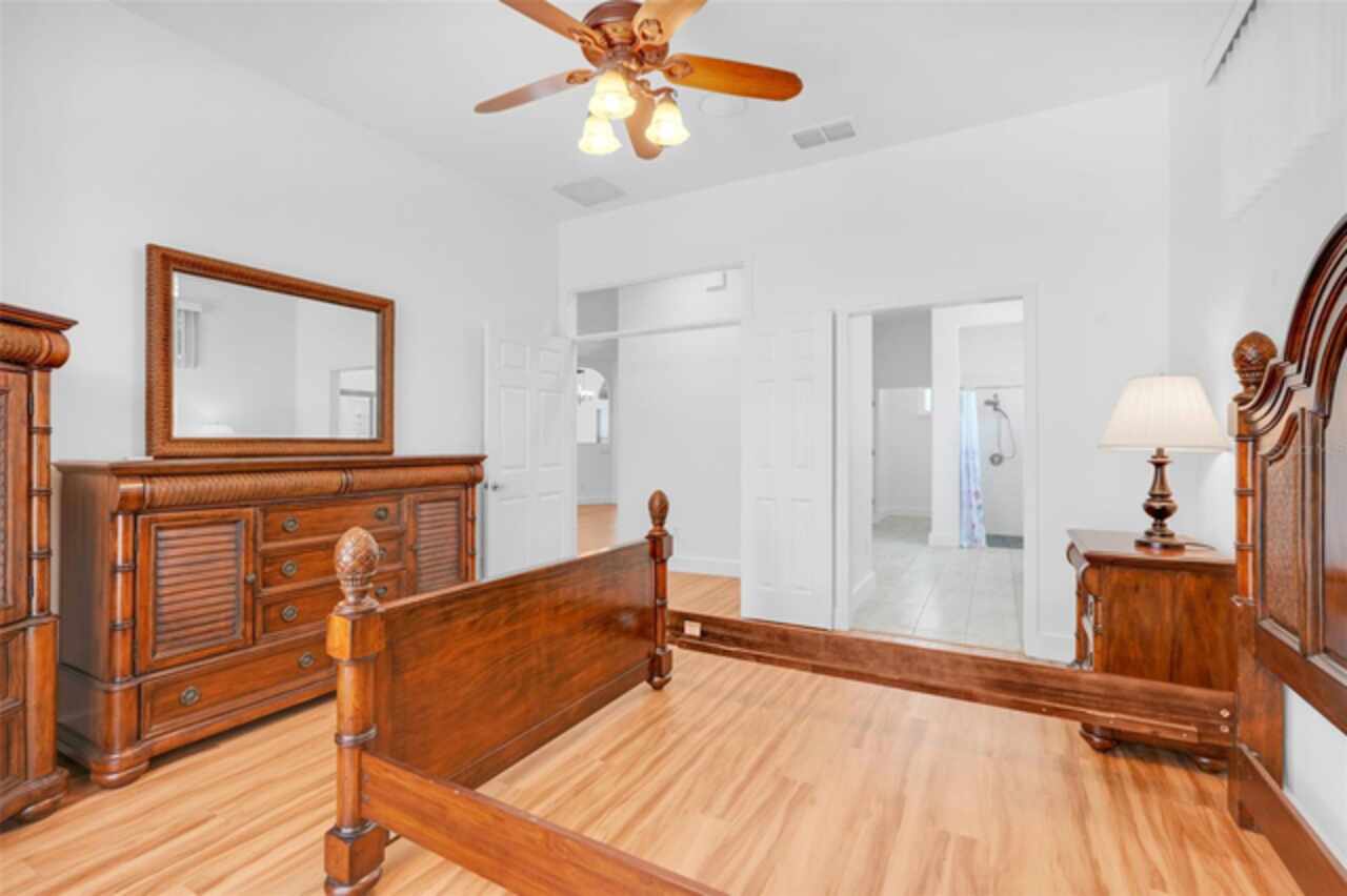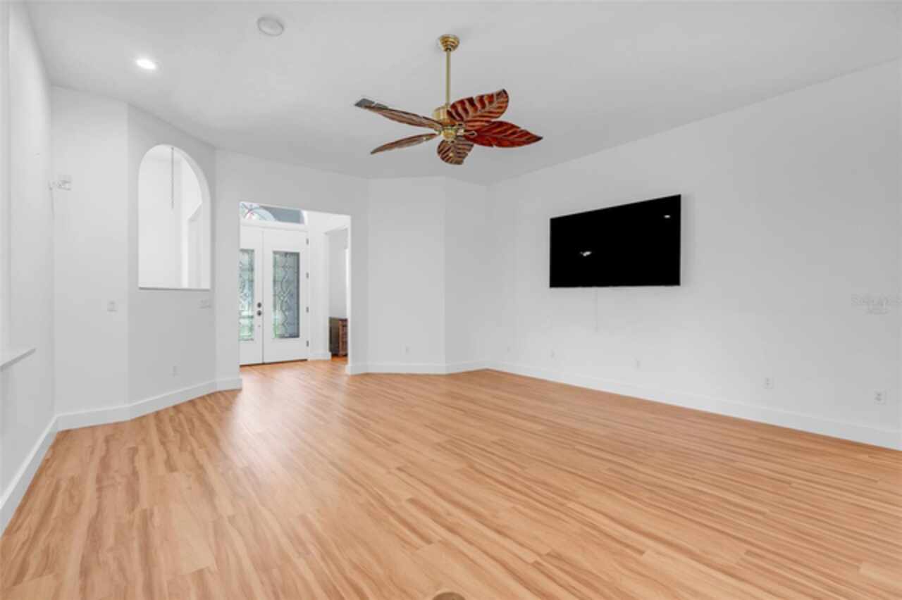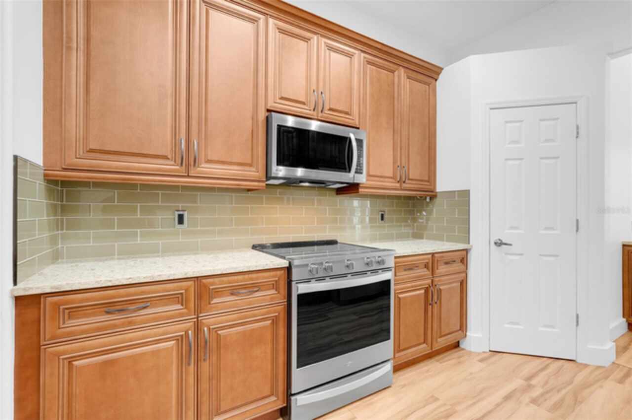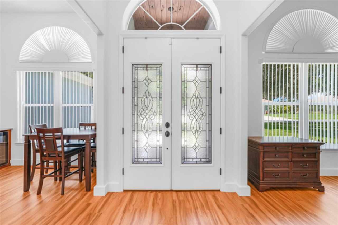 Under contract-accepting backup offers. One or more photo(s) has been virtually staged. Located in the desirable Green Valley community in Clermont, this stunning 3-bedroom, 2-bath home sits on a quiet cul-de-sac and has been completely renovated from top to bottom, offering modern elegance paired with breathtaking golf course and lake views. From the moment you step through the front door, you’re greeted with a striking open floor plan where your eyes travel straight through the living room, across the sparkling pool, and out to the serene lake and golf course beyond. The chef’s kitchen has been fully renovated with custom cabinetry, quartz counters, stainless steel appliances, and a charming breakfast nook with a built-in storage bench overlooking the pool. Just off the kitchen, the dining room showcases a custom built-in buffet with wine cooler, adding both style and function while creating the perfect space for entertaining. The private master suite is positioned at the back of the home, designed to maximize both comfort and views. Elegant French doors lead directly to the lanai and pool area, inviting in natural light and offering a seamless indoor-outdoor lifestyle. The renovated en-suite bathroom showcases a modern shower, cabinetry, and upgraded flooring. Both secondary bedrooms are generously sized and share a beautifully updated second bathroom that has been completely redesigned with updated walk-in shower, cabinetry, and flooring. Step outside to your own private resort: a heated, saltwater pool anchors the expansive lanai. Designed with entertaining in mind, the outdoor area features multi-level decking with detailed brick pavers, creating plenty of space for lounging, dining, or gathering with friends and family. The covered entertaining area showcases a beautiful wood-paneled ceiling with dual fans. Completing this resort-like retreat is the fully equipped outdoor kitchen with tile countertops, built-in grill, refrigerator, bar seating, sink, and mounted TV, ensuring every occasion is unforgettable—all while overlooking the lush greens and shimmering lake. Every major system and detail has been thoughtfully updated, including: FULLY PAID OFF WHOLE HOUSE SOLAR, GENERAC WHOLE HOUSE GENERATOR, A/C UNIT 2020, WHOLE HOUSE REPIPE 2018, WINDOWS REPLACED 2018, WATER TREATMENT SYSTEM, WELL FOR IRRIGATION, EPOXY COATED GARAGE FLOOR, NEWER GARAGE DOORS & POOL RESURFACED AND RESCREENED. Whether it’s morning coffee with a view, entertaining friends poolside, or enjoying peaceful evenings by the water, this home delivers the ultimate golf-front Florida lifestyle. Call today!
