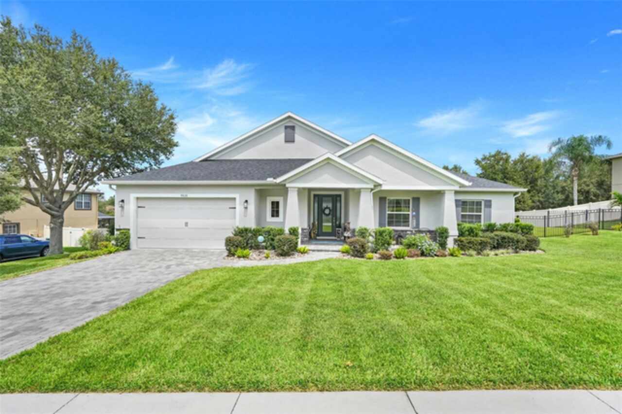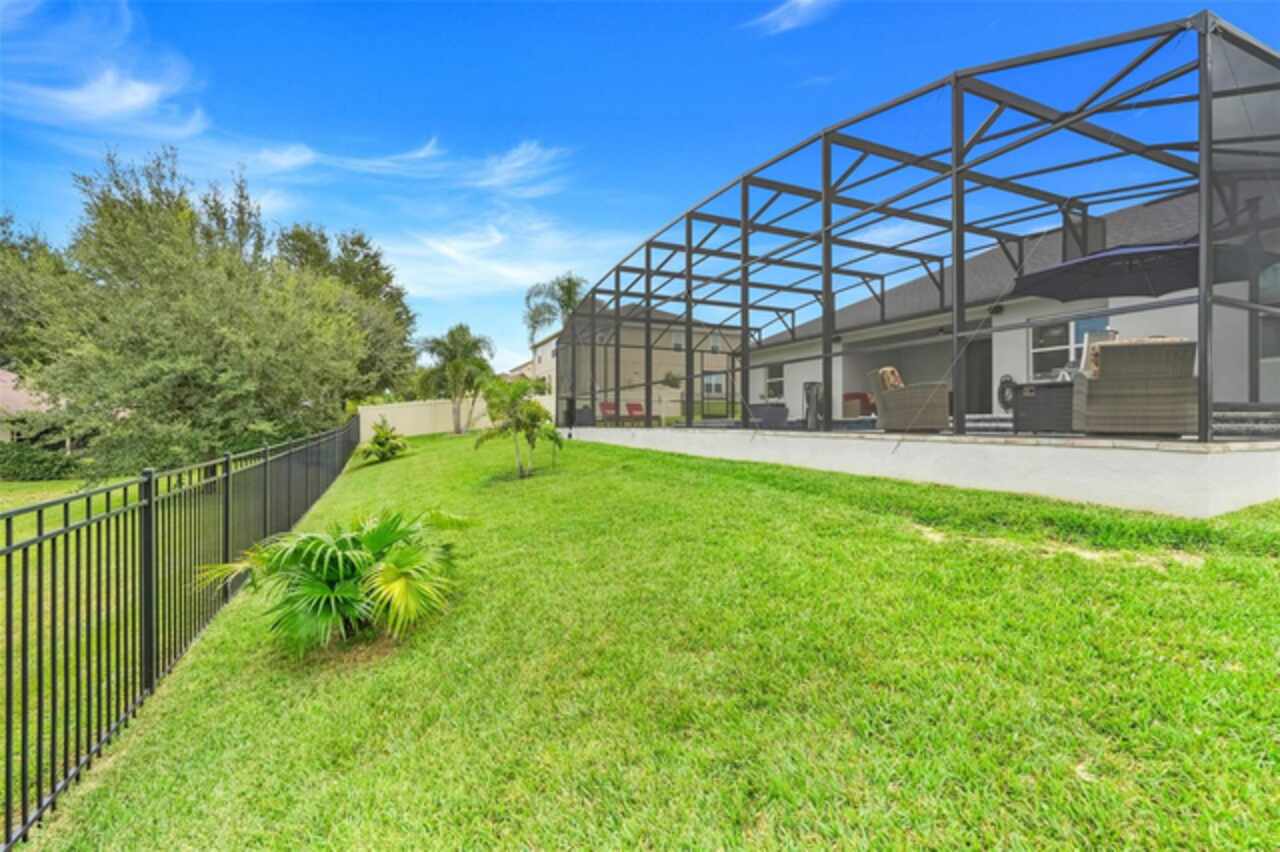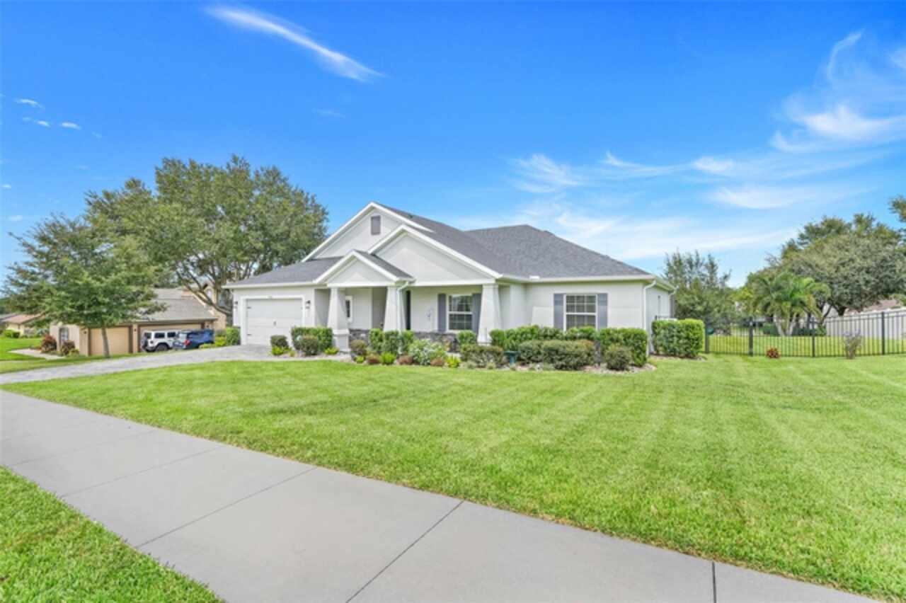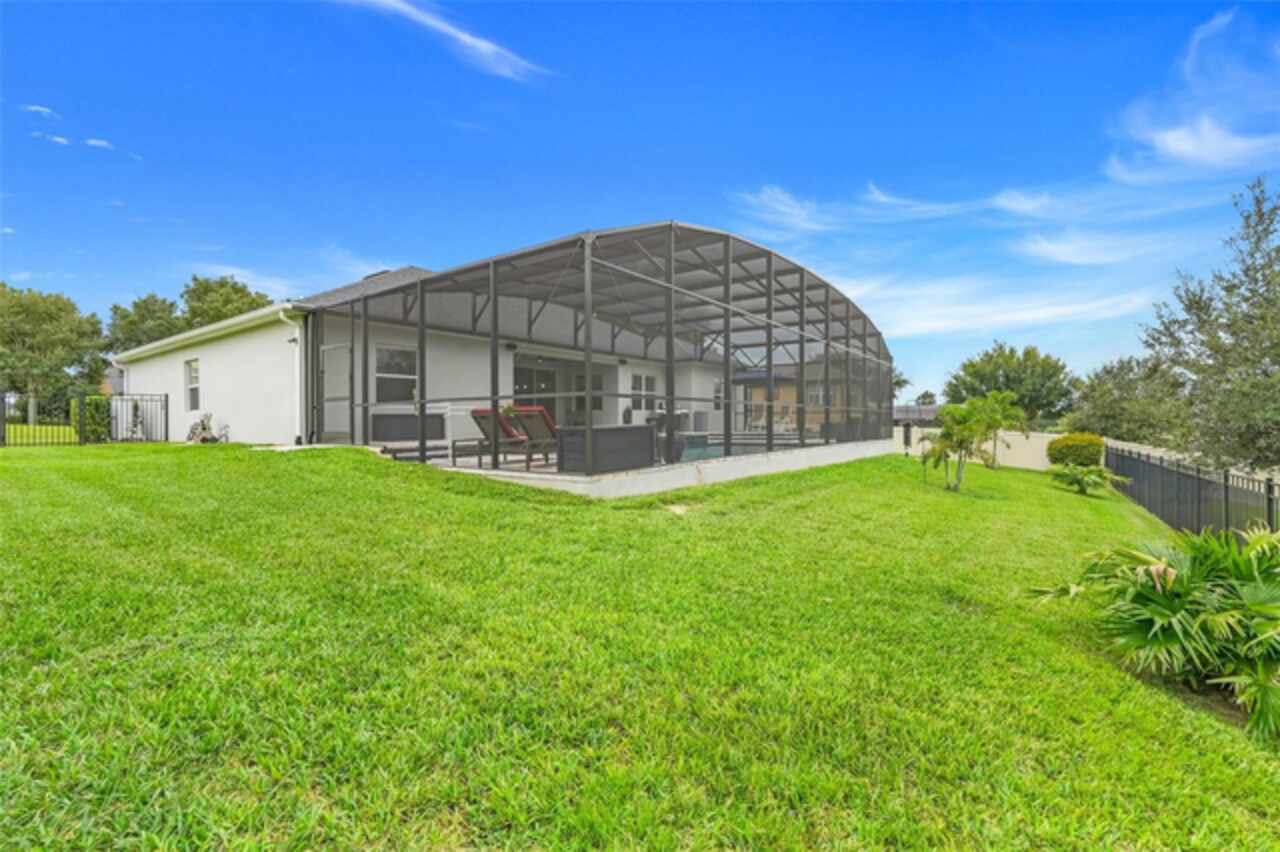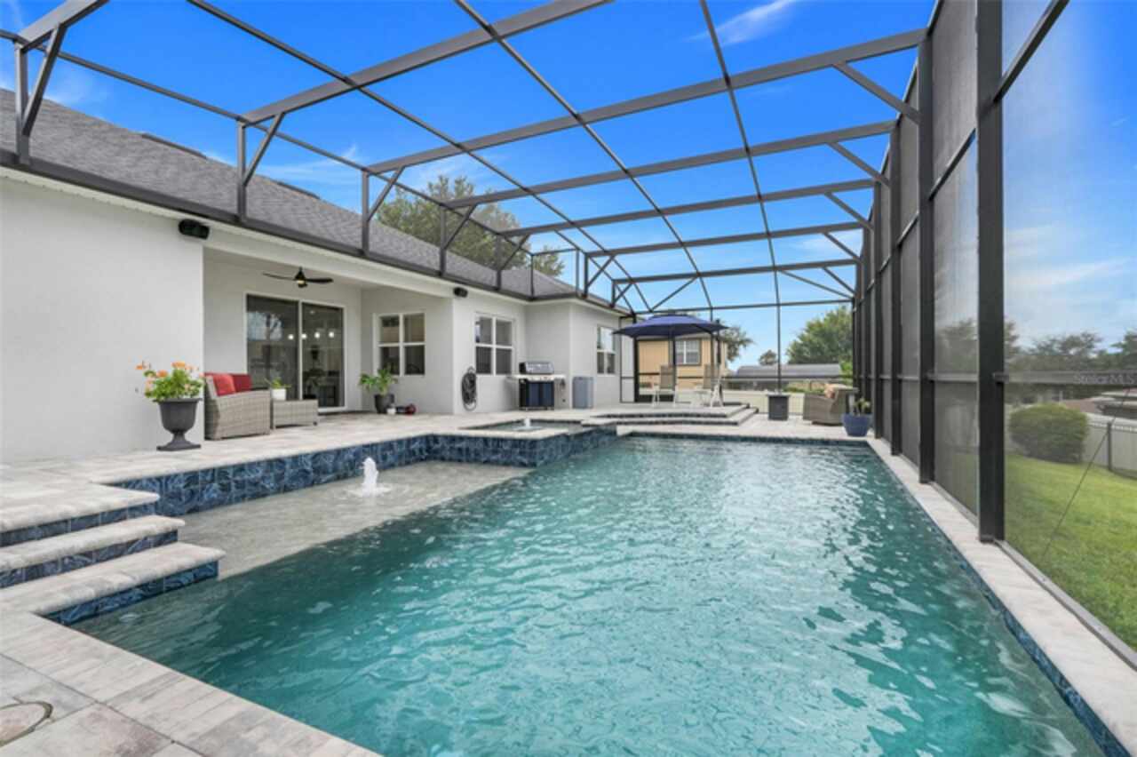 Under contract-accepting backup offers. The minute you pull up to this 2021 custom built home, you'll notice the eccentricity of what separates this one from the others. Stone facade, new exterior paint, and a wrought iron fence outlining the back of this .38 acre lot. Every inch of this home includes upgrades and high end finishes. From the volume tray ceilings trimmed with crown molding, to the abundance of recessed lighting, down to the 6 x 24 wood-like tile that lines the entire living space of the home. Modern luxury extends into the kitchen with the highest level of granite counter tops, 42" cabinets with soft close, stainless steel appliances, and pendant lighting over the extended island. The living room is equipped with surround sound & equipment hook up, allowing for your own theatre like experience at home. The three guest rooms are located on the East end of the home and offer a split use bathroom, enabling more than one person to get ready at once! The second guest bathroom is on the opposite side of the home, near the laundry room; keeping actual guests away from the occupant guest bathroom. The primary bedroom, on the West side of the home, is quite large, and offers a view of your private pool & spa. Dual sinks, a separate soaking tub & shower, and a walk-in closet is everything you need in your own private space. The 15 x 30 saltwater pool was just built in 2024, offering many more years of use. The 8 person built in spa is an added feature that doesn't exist in many homes. Lastly, the 6 x 12 sun shelf, in addition to the pool, is another amazing unique feature of this space. All surrounded by a screened lanai on top of a brick paved outdoor living space with a sunken patio. Over $150, 000 was spent making this area the perfect private oasis. This home also includes an upgraded, high efficiency, AC unit. This is one of the few newer communities in the Clermont area that have larger lot sizes. It's located just 3 miles from Clermont's Cypress Cove Mariana (where you can store your boat) and The Cove, where you can rent boats to enjoy the Clermont Chain of Lakes, listen to live music, or just sip your favorite drink. Perfect proximity to Orlando and all the theme parks. Close enough to get there quick, but far enough that you don't have to deal with the traffic! Make this home yours! Schedule a private showing today!