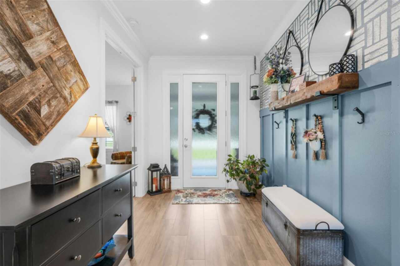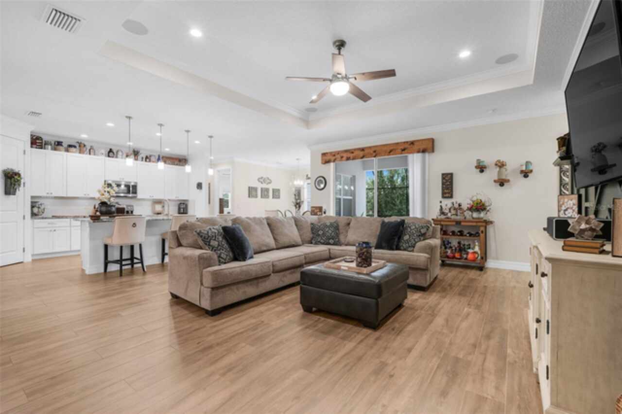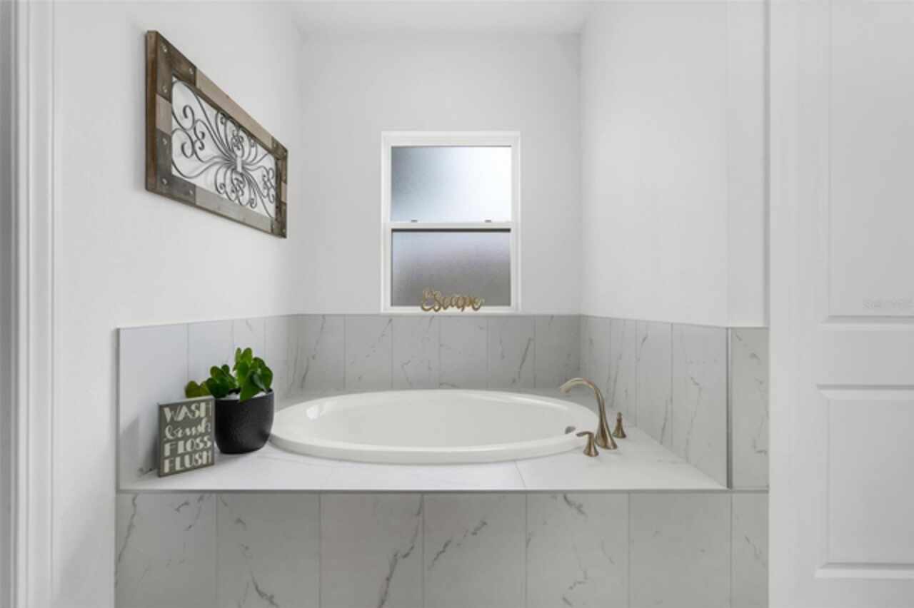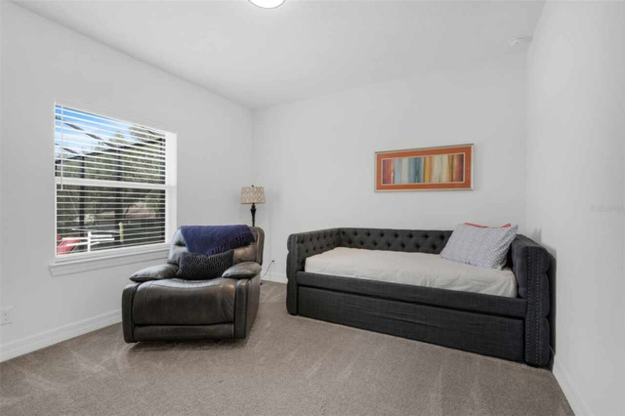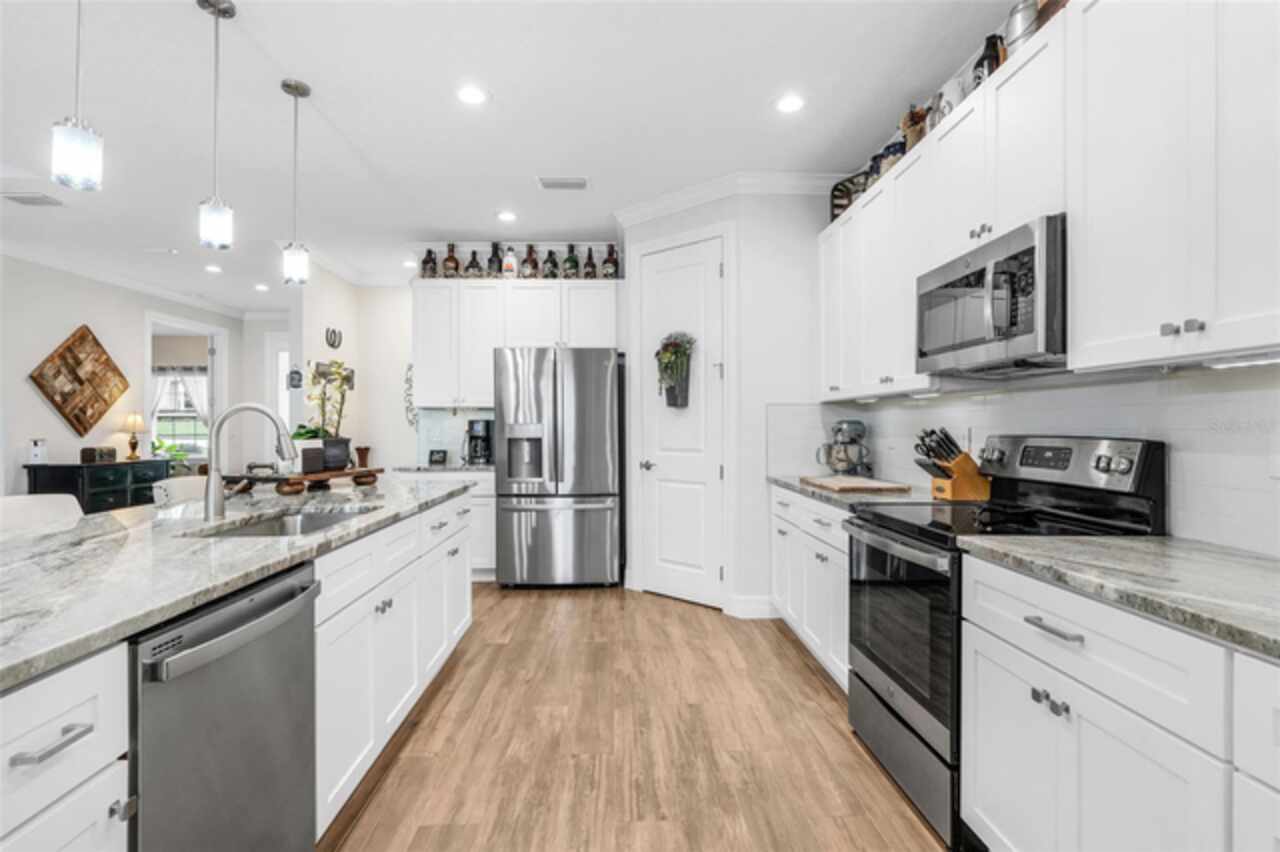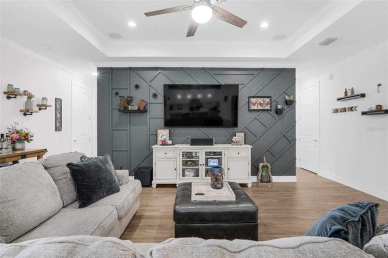 Under contract-accepting backup offers. The minute you pull up to this 2021 custom built home, you'll notice the eccentricity of what separates this one from the others. Stone facade, new exterior paint, and a wrought iron fence outlining the back of this .38 acre lot. Every inch of this home includes upgrades and high end finishes. From the volume tray ceilings trimmed with crown molding, to the abundance of recessed lighting, down to the 6 x 24 wood-like tile that lines the entire living space of the home. Modern luxury extends into the kitchen with the highest level of granite counter tops, 42" cabinets with soft close, stainless steel appliances, and pendant lighting over the extended island. The living room is equipped with surround sound & equipment hook up, allowing for your own theatre like experience at home. The three guest rooms are located on the East end of the home and offer a split use bathroom, enabling more than one person to get ready at once! The second guest bathroom is on the opposite side of the home, near the laundry room; keeping actual guests away from the occupant guest bathroom. The primary bedroom, on the West side of the home, is quite large, and offers a view of your private pool & spa. Dual sinks, a separate soaking tub & shower, and a walk-in closet is everything you need in your own private space. The 15 x 30 saltwater pool was just built in 2024, offering many more years of use. The 8 person built in spa is an added feature that doesn't exist in many homes. Lastly, the 6 x 12 sun shelf, in addition to the pool, is another amazing unique feature of this space. All surrounded by a screened lanai on top of a brick paved outdoor living space with a sunken patio. Over $150, 000 was spent making this area the perfect private oasis. This home also includes an upgraded, high efficiency, AC unit. This is one of the few newer communities in the Clermont area that have larger lot sizes. It's located just 3 miles from Clermont's Cypress Cove Mariana (where you can store your boat) and The Cove, where you can rent boats to enjoy the Clermont Chain of Lakes, listen to live music, or just sip your favorite drink. Perfect proximity to Orlando and all the theme parks. Close enough to get there quick, but far enough that you don't have to deal with the traffic! Make this home yours! Schedule a private showing today!