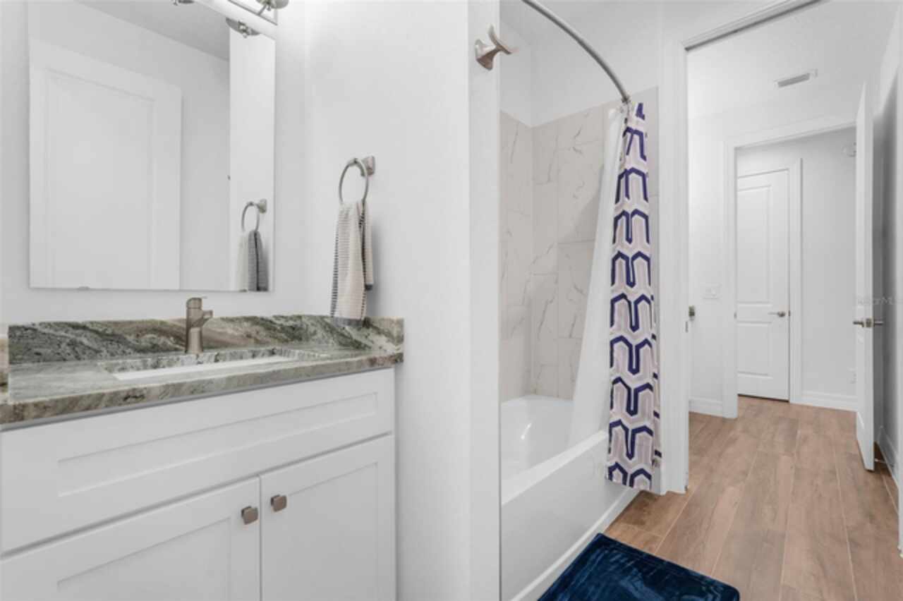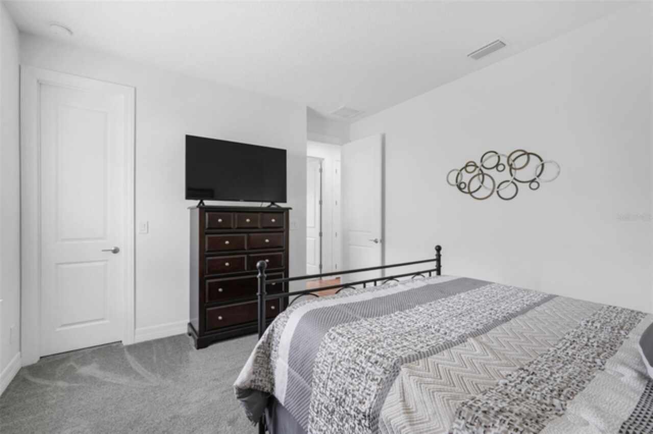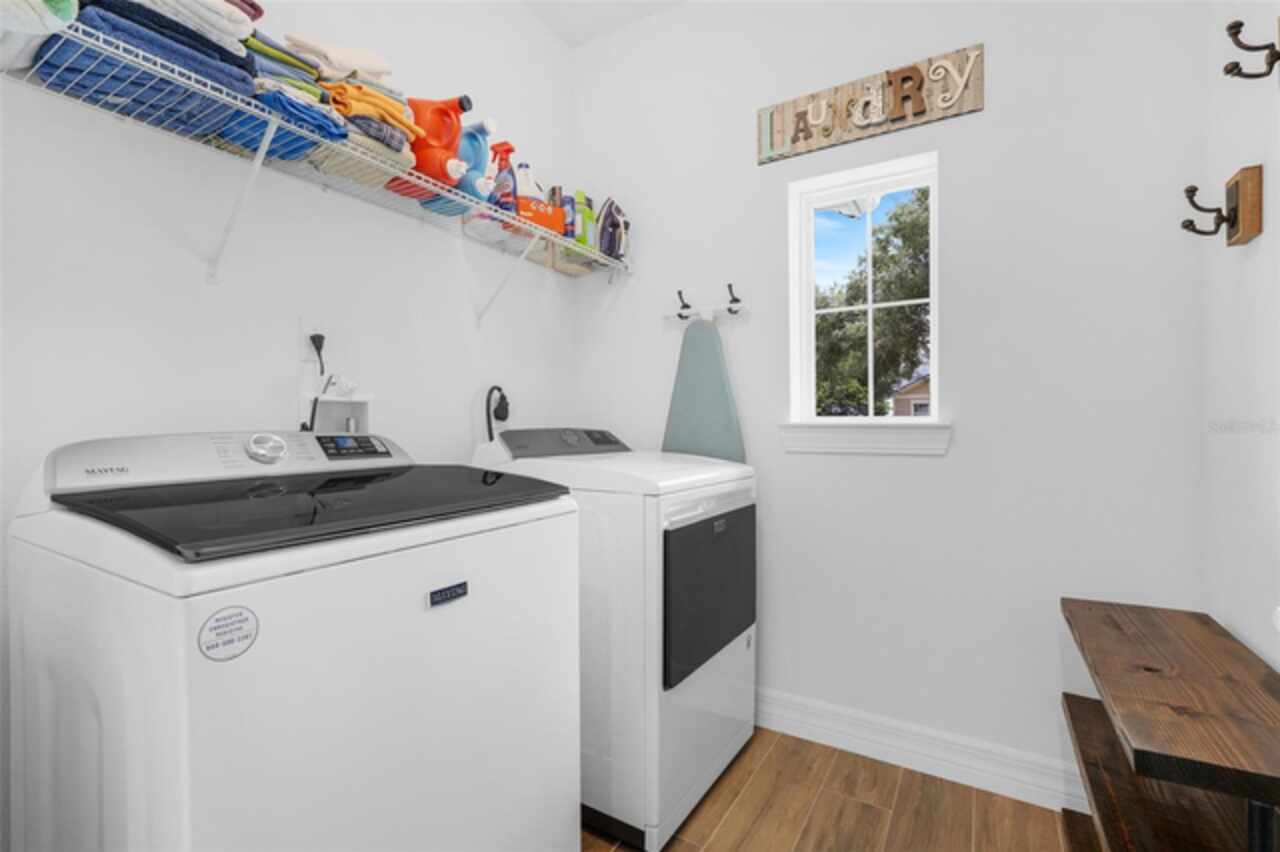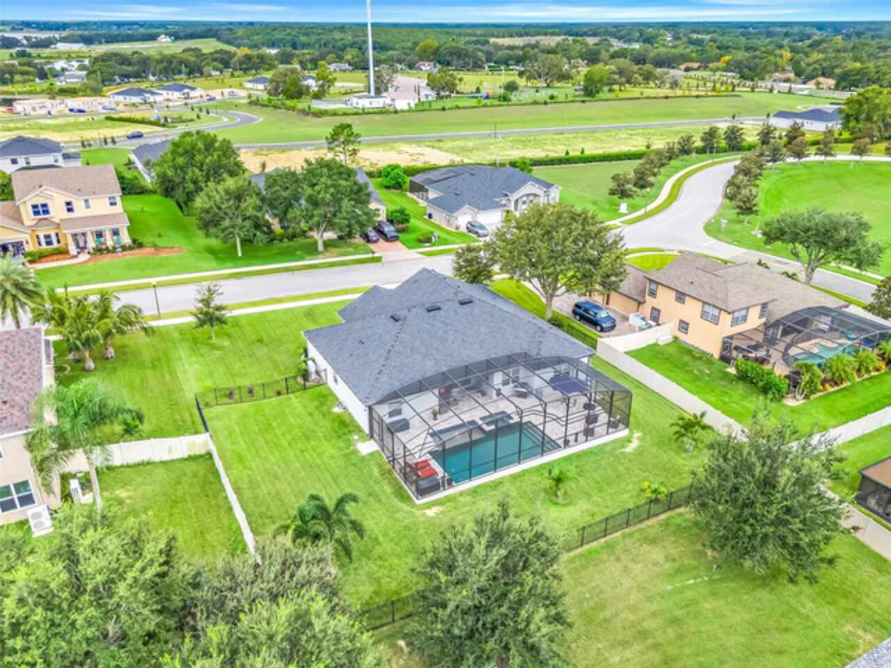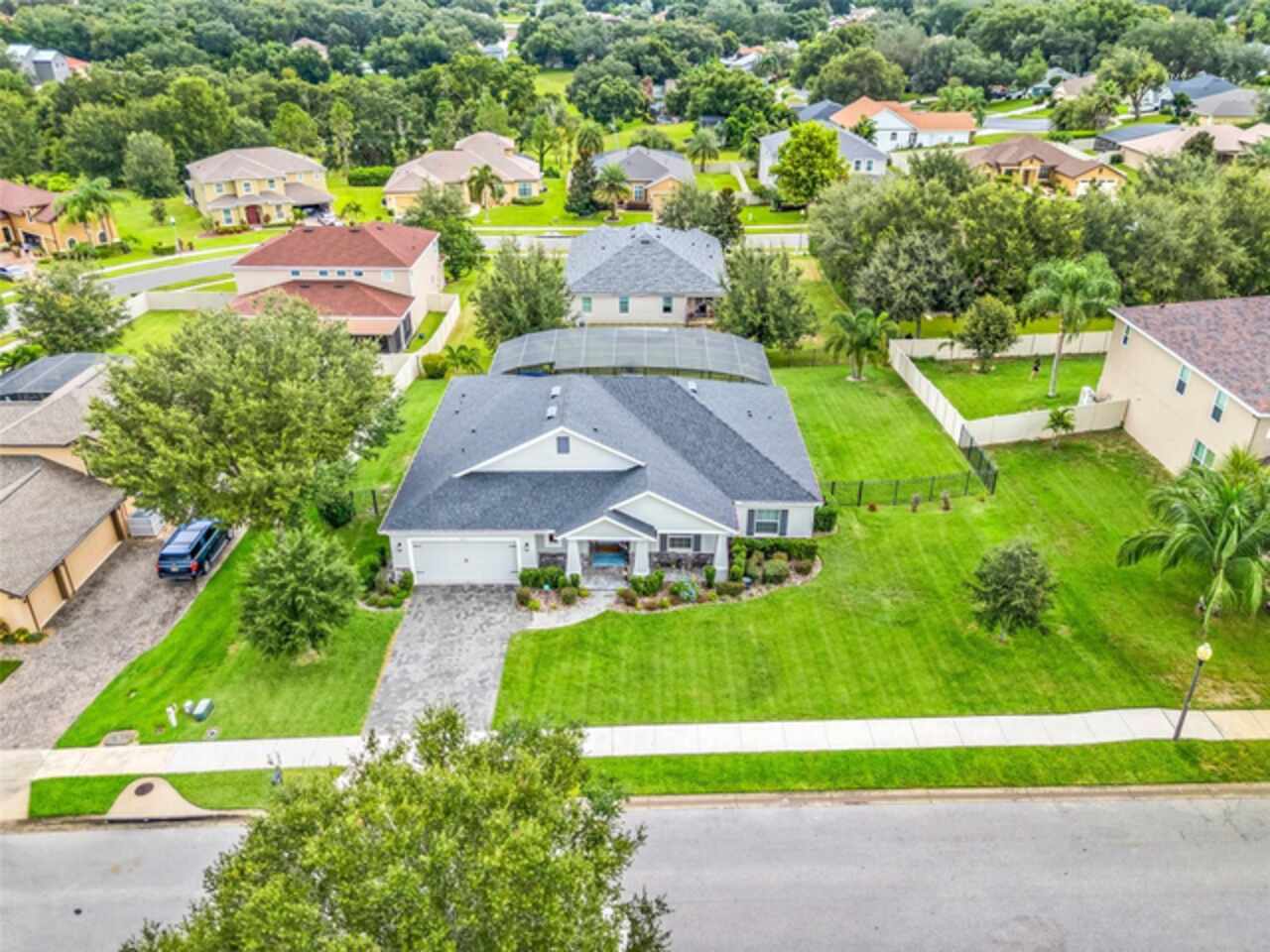 Under contract-accepting backup offers. The minute you pull up to this 2021 custom built home, you'll notice the eccentricity of what separates this one from the others. Stone facade, new exterior paint, and a wrought iron fence outlining the back of this .38 acre lot. Every inch of this home includes upgrades and high end finishes. From the volume tray ceilings trimmed with crown molding, to the abundance of recessed lighting, down to the 6 x 24 wood-like tile that lines the entire living space of the home. Modern luxury extends into the kitchen with the highest level of granite counter tops, 42" cabinets with soft close, stainless steel appliances, and pendant lighting over the extended island. The living room is equipped with surround sound & equipment hook up, allowing for your own theatre like experience at home. The three guest rooms are located on the East end of the home and offer a split use bathroom, enabling more than one person to get ready at once! The second guest bathroom is on the opposite side of the home, near the laundry room; keeping actual guests away from the occupant guest bathroom. The primary bedroom, on the West side of the home, is quite large, and offers a view of your private pool & spa. Dual sinks, a separate soaking tub & shower, and a walk-in closet is everything you need in your own private space. The 15 x 30 saltwater pool was just built in 2024, offering many more years of use. The 8 person built in spa is an added feature that doesn't exist in many homes. Lastly, the 6 x 12 sun shelf, in addition to the pool, is another amazing unique feature of this space. All surrounded by a screened lanai on top of a brick paved outdoor living space with a sunken patio. Over $150, 000 was spent making this area the perfect private oasis. This home also includes an upgraded, high efficiency, AC unit. This is one of the few newer communities in the Clermont area that have larger lot sizes. It's located just 3 miles from Clermont's Cypress Cove Mariana (where you can store your boat) and The Cove, where you can rent boats to enjoy the Clermont Chain of Lakes, listen to live music, or just sip your favorite drink. Perfect proximity to Orlando and all the theme parks. Close enough to get there quick, but far enough that you don't have to deal with the traffic! Make this home yours! Schedule a private showing today!