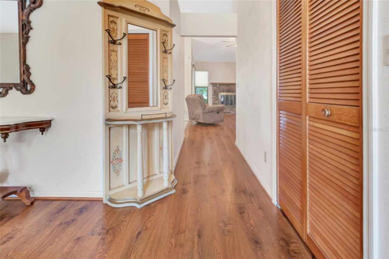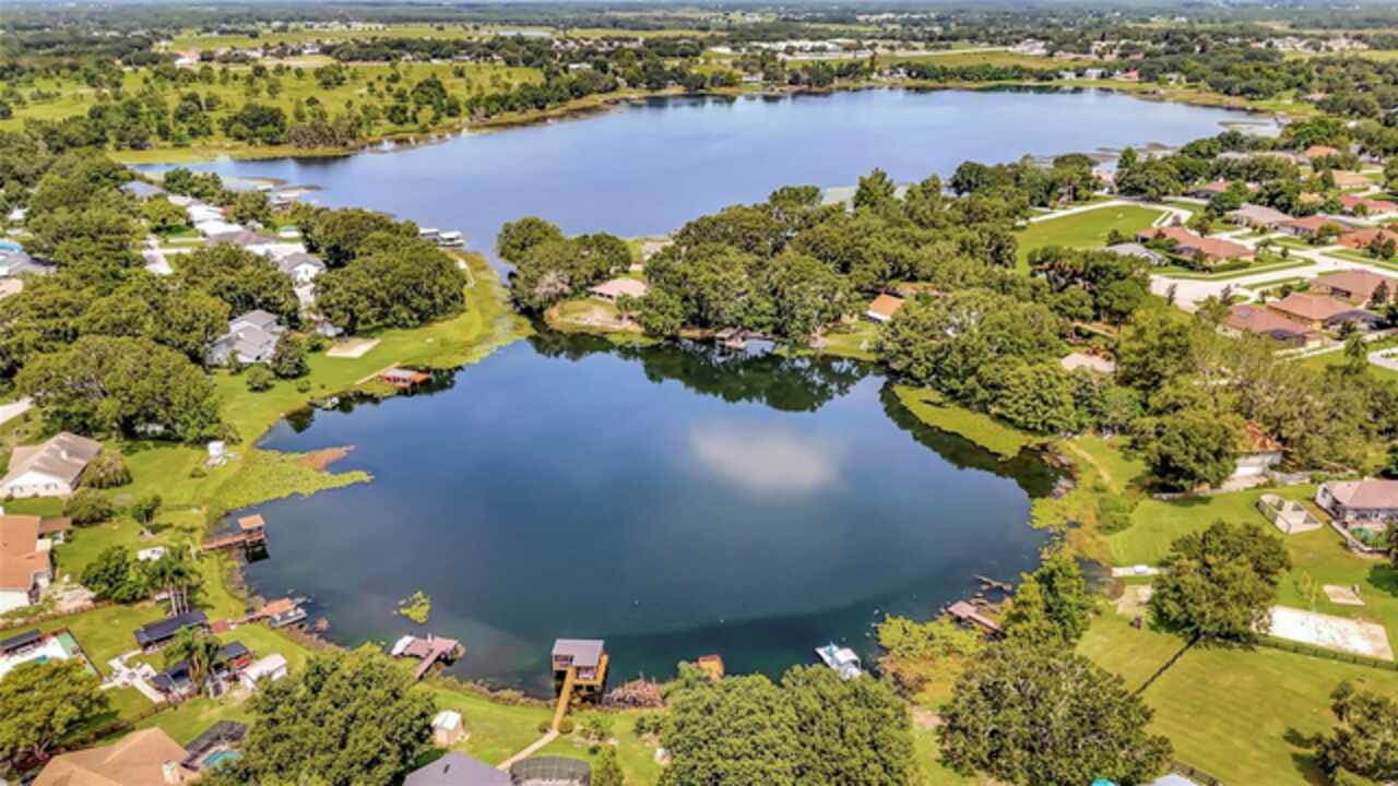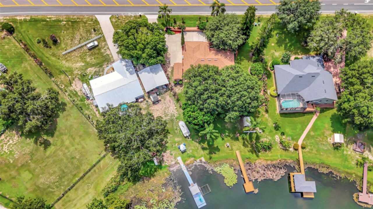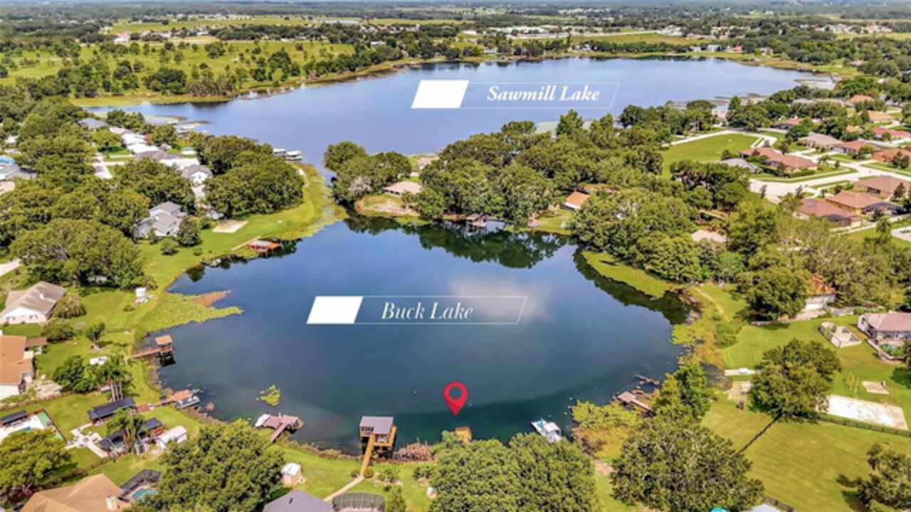 WHAT A CUSTOM LAKEFRONT BEAUTY ON BUCK LAKE. LAKE BUCK CONNECTS TO SAWMILL LAKE WHERE YOU CAN SLALOM SKI, JET SKI, FISH AND OTHER WATER SPORTS. This custom home has three bedrooms, two bathrooms, formal living room, formal dining room, family room, a two car garage, 2035 square feet, 10X10 DOCK, workshop and a shed. The enclosed lanai is 35x12 that has tile floors, lots of windows with easy open blinds and a small office. The lanai leads to the backyard with beautiful landscaping, 16x12 patio and a 16x10 deck and has beautiful lake views, peace, nature and tranquility. As you walk in the inviting foyer opens to the formal living room that has a bay window, new blinds, laminate flooring and has a lot of natural light. The family room has a wood burning/gas fireplace, ceiling fan, laminate wood flooring, new blinds and sliding glass doors that open to the enclosed lanai. The kitchen is equipped with a refrigerator, range, microwave, dishwasher, large pantry, island with storage, tile flooring and French doors with built-in shades that open to the lanai. The formal dining area has laminate wood flooring and sliding glass doors that open to the enclosed lanai. The primary bedroom has a ceiling fan, laminate wood floors, huge walk-in closet and sliding glass doors that open to the lanai. The primary bathroom has a jetted bathtub, separate shower, dual sinks, linen closet and tile floors. Bedroom two has sliding glass doors with built-in blinds that open to a 16x10 deck, ceiling fan, large closet and laminate wood floors. Bedroom three has a large closet, ceiling fan, blinds and laminate hardwood floors. THE ROOF IS ONLY TWO YEARS OLD, AIR CONDITIONER TWO YEARS OLD, TRANSFERABLE TERMITE BOND, TRANSFERRABLE WIND MITIGATION, IRRIGATION SYSTEM FROM THE LAKE, 15X10 WORKSHOP WITH NEW SIDING AND NEW ROOF, WATER FILTRATION SYSTEM FOR THE WHOLE HOUSE, WELL WATER SO NO WATER BILLS, BEAUTIFULLY LANDSCAPED AND GORGEOUS VIEWS.