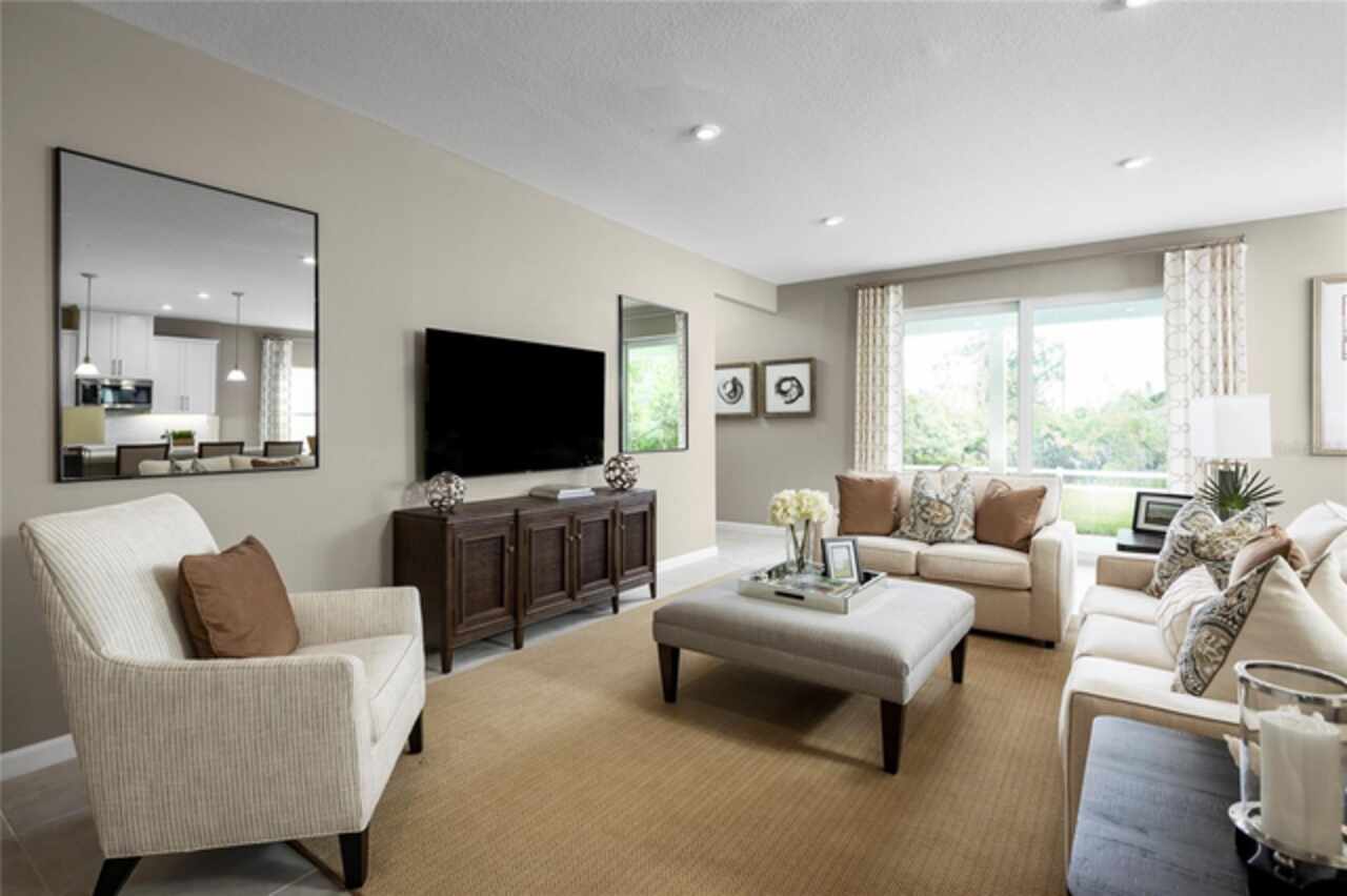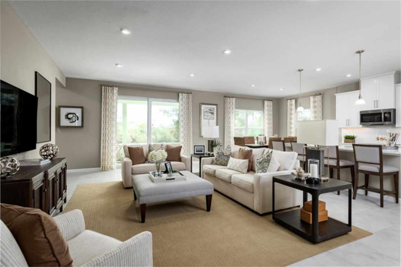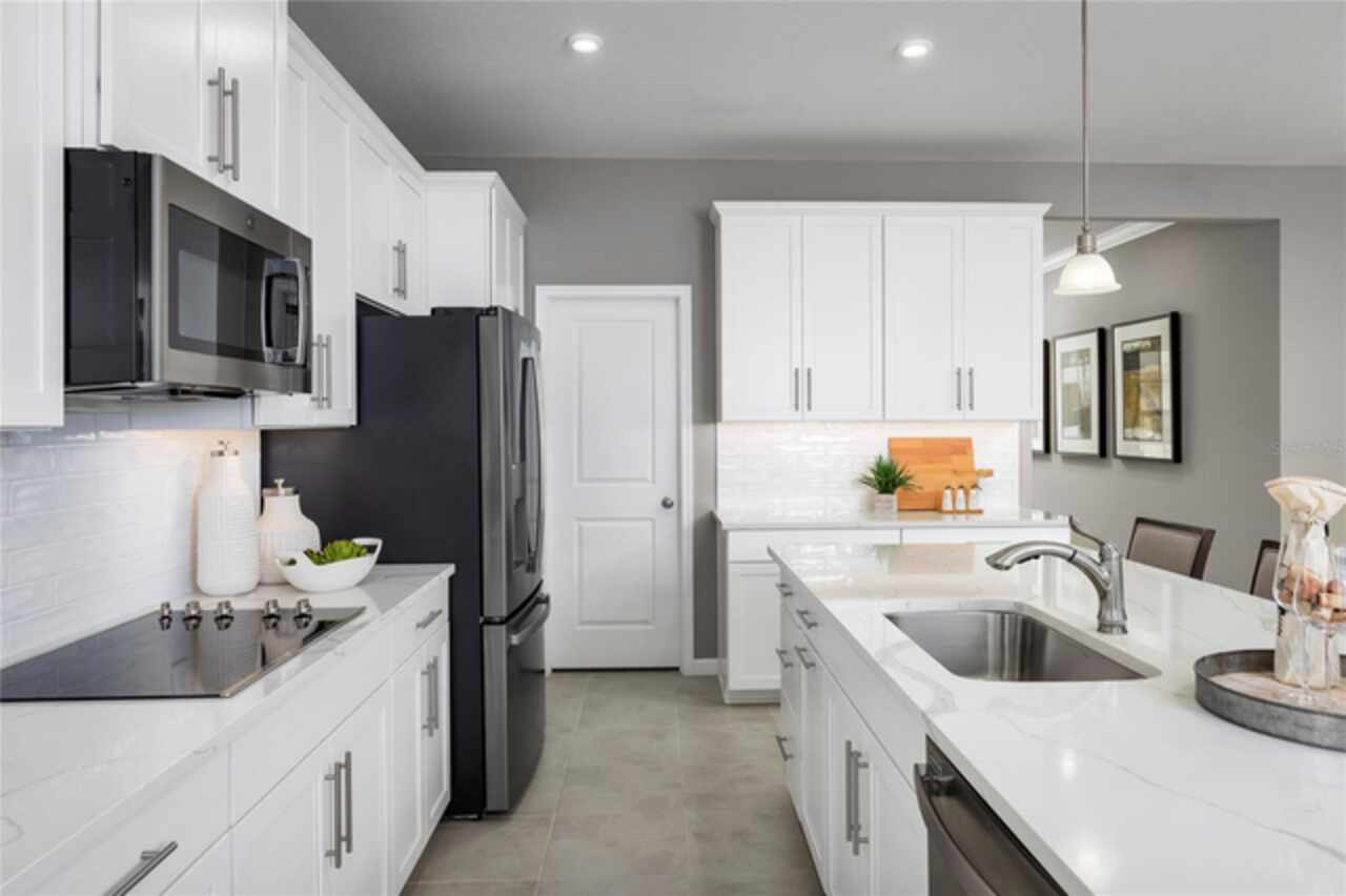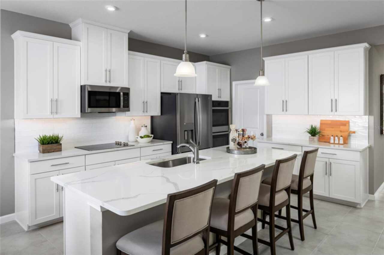 Under Construction. Welcome to Lake Nellie Crossing! No CDD fee, a low monthly HOA, and a low millage rate. In the rolling hills of Clermont, a nature-filled community with oversized homesites and a playground, tucked away from the hustle of Highway 27 while being only 12 minutes away from the closest shopping center. Larger homesites meaning a bigger backyard to add a private pool or playset. The Peterson Cove single-family villa is the picture of modern living. Enter through the inviting foyer where adjoining flex space can be used however you like. The wide-open family room flows effortlessly to the gourmet kitchen and dining area with a large island and huge walk-in pantry. Three more bedrooms and a full bath are tucked quietly into their own wing. Your luxurious owner’s suite stuns with its huge walk-in closet, double vanity bath, oversized shower and private access to the lanai. Discover The Peterson Cove. All Ryan Homes now include WIFI-enabled garage opener and Ecobee thermostat. **Closing cost assistance is available with use of Builder’s affiliated lender**. DISCLAIMER: Prices, financing, promotion, and offers subject to change without notice. Offer valid on new sales only. See Community Sales and Marketing Representative for details. Promotions cannot be combined with any other offer. All uploaded photos are stock photos of this floor plan. Actual home may differ from photos.