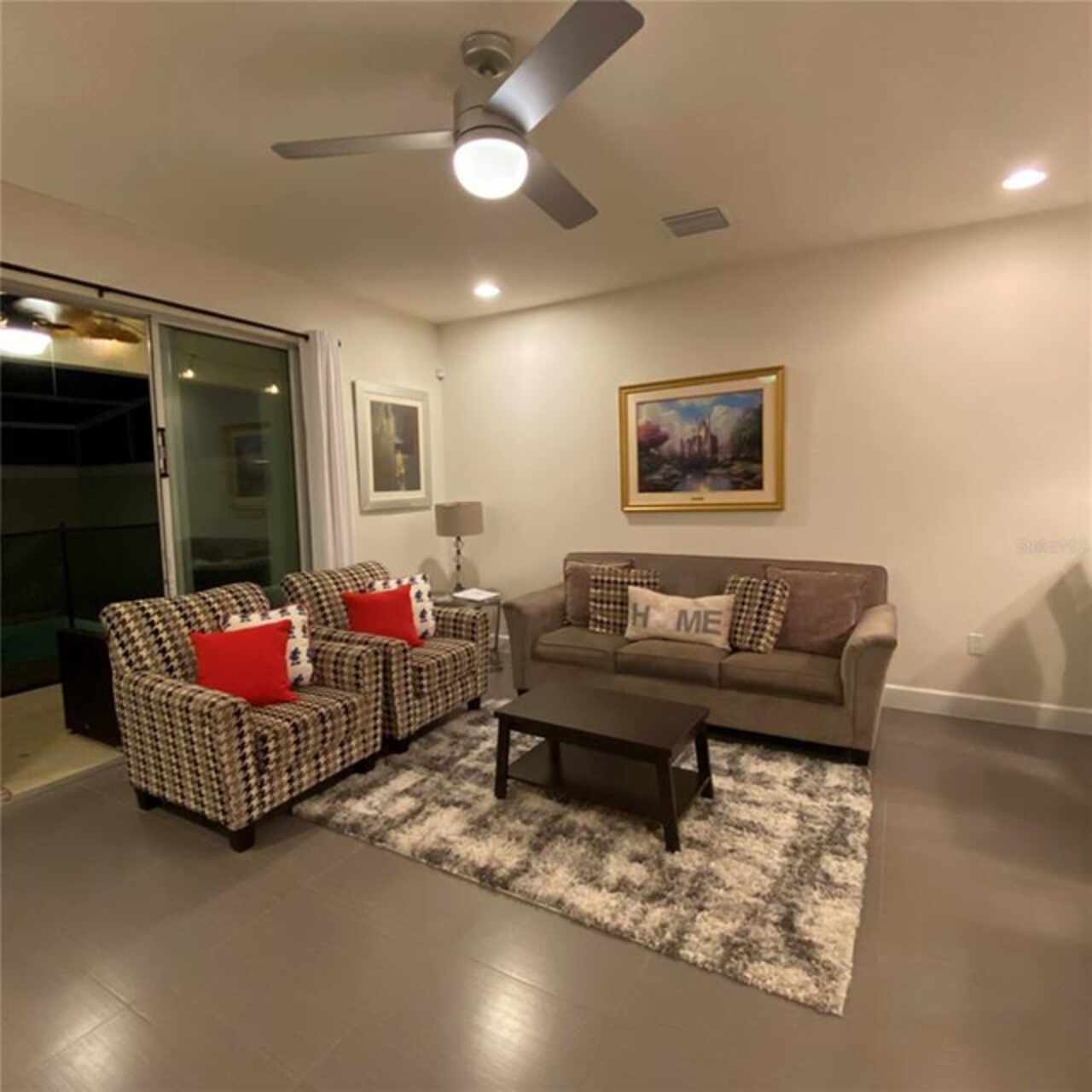 Beautiful 3 bedroom 3 bath end unit in desirable Serenity at Silver Creek. Numerous upgrades, beautiful modern kitchen, fully furnished, TV Electronics and more. 1st floor bedroom with beautiful custom tiled shower. Custom flooring throughout. Full size washer and dryer. Custom lanai with spa pool. Great community for walking. This home is perfectly situated near the community clubhouse, pool, complimentary game room and exercise room. All inclusive. Appliance package. Immaculate home! Move right in or rent immediately. The controller to the pool heater was replaced in 2018. The pool pump was replaced in the summer of 2021. The compressor for the air conditioner was replaced in December 2021. All ceiling fans were added in 2021 inside the house. The lights and fan on the lanai.